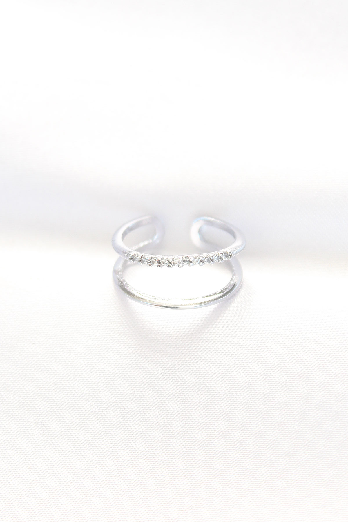 2li Görünümlü Su Yolu Tasarımlı Silver Renk Ayarlanabilir Yüzük