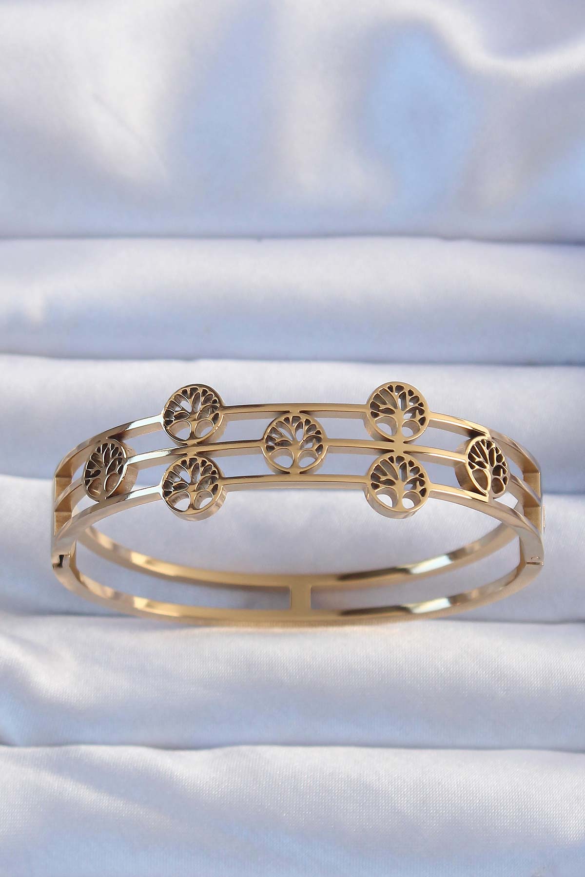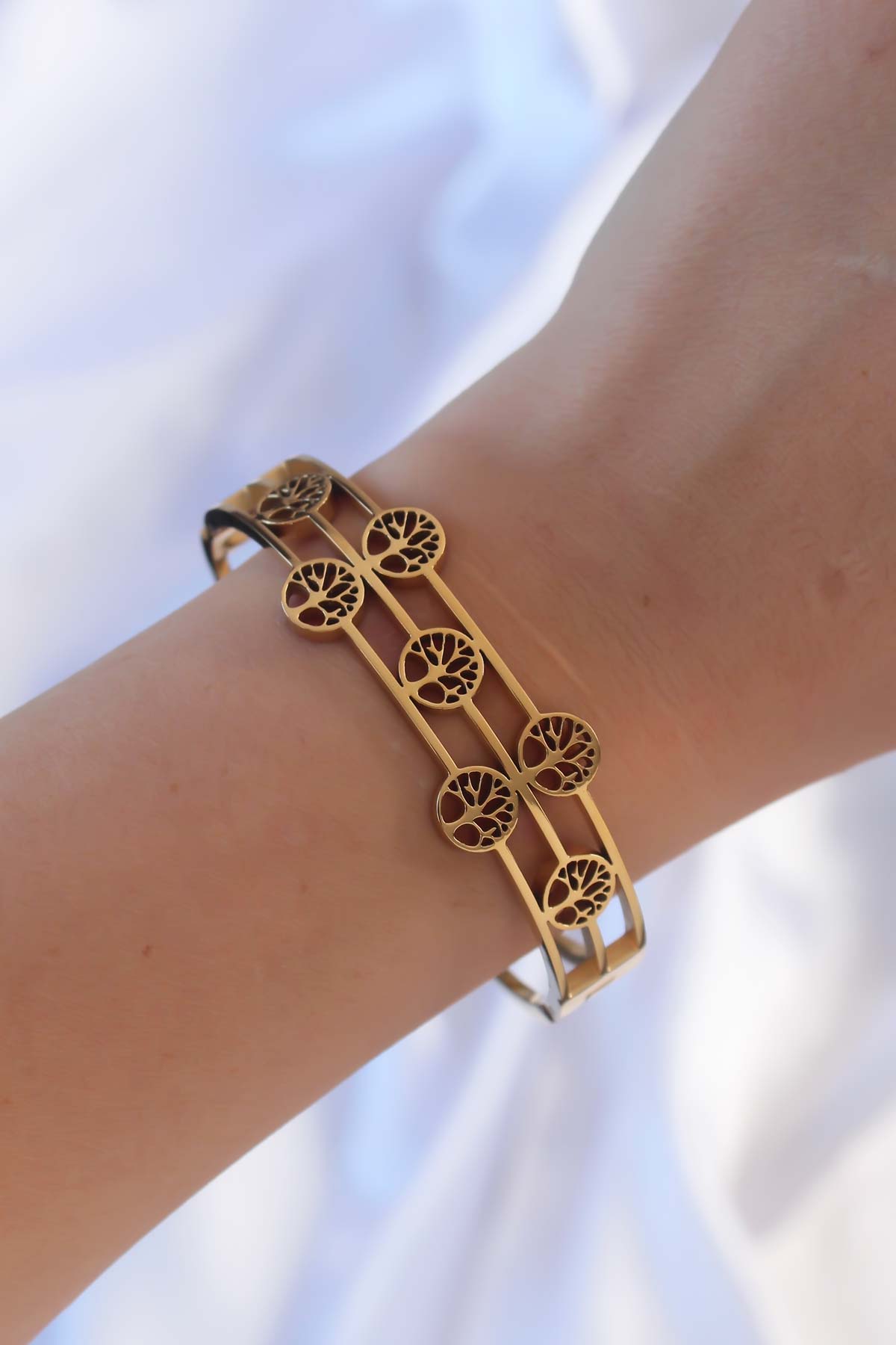 316L Çelik Altın Renk Minimal Yaşam Ağacı Tasarımlı Kelepçe