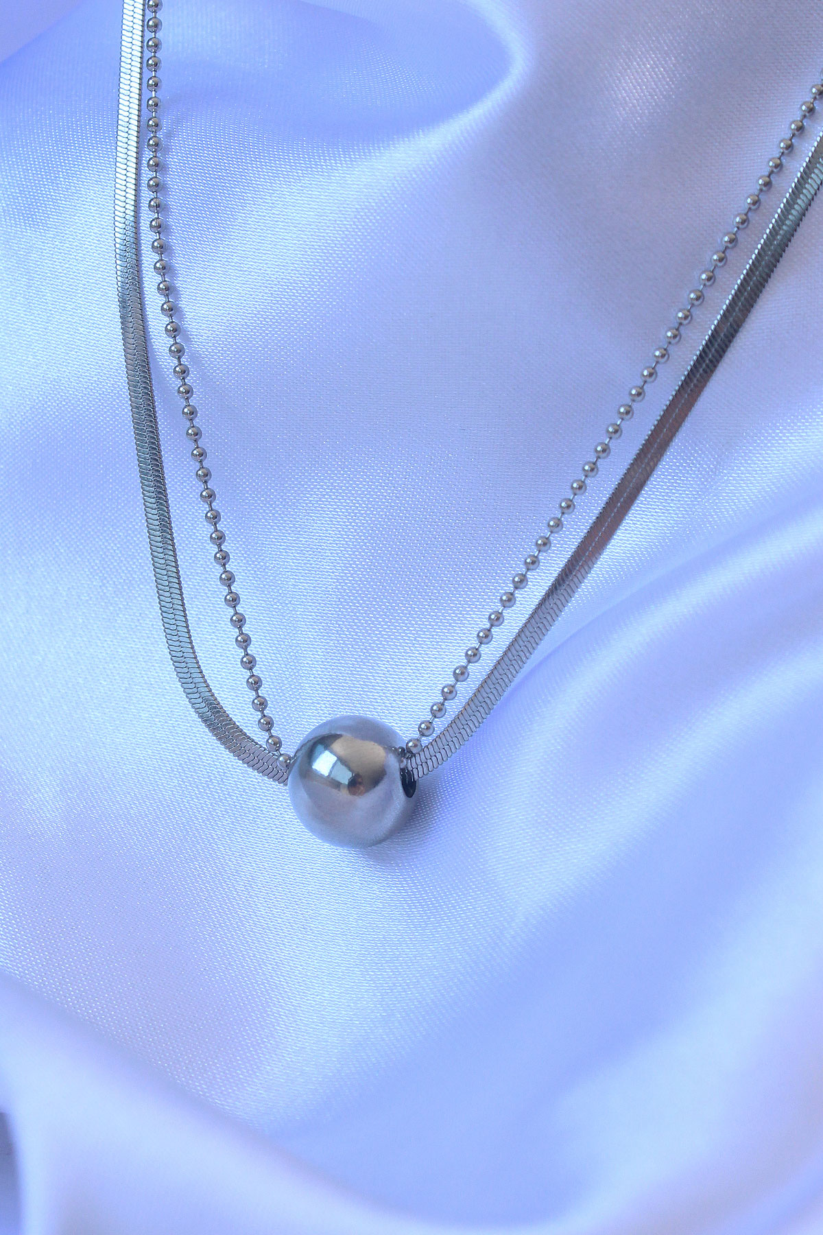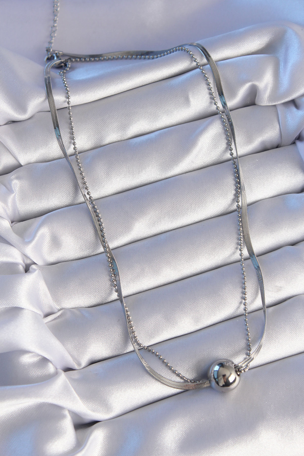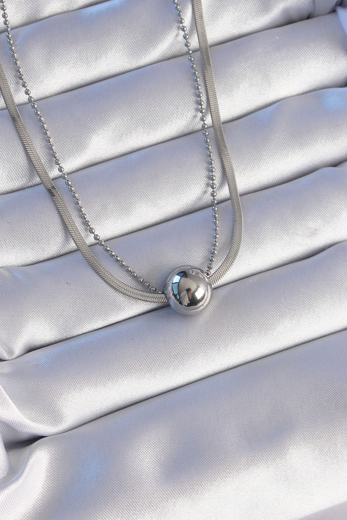 316L Çelik Çift Zincirli Gümüş Renk Topçuk İtalyan Model Kolye