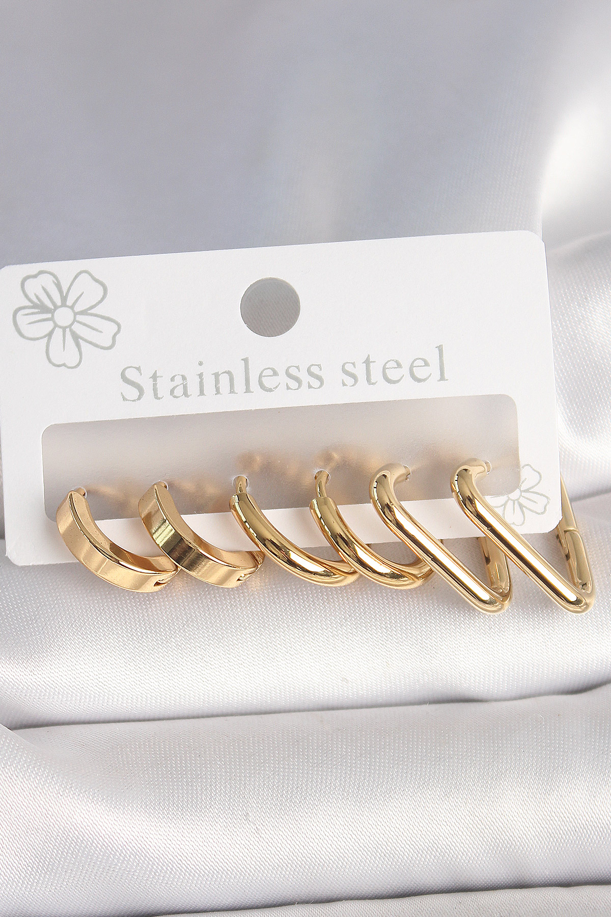 İlk yorum yapan sen ol “316L Çelik Gold Renk Üçgen Halka Model Kadın Küpe Seti”