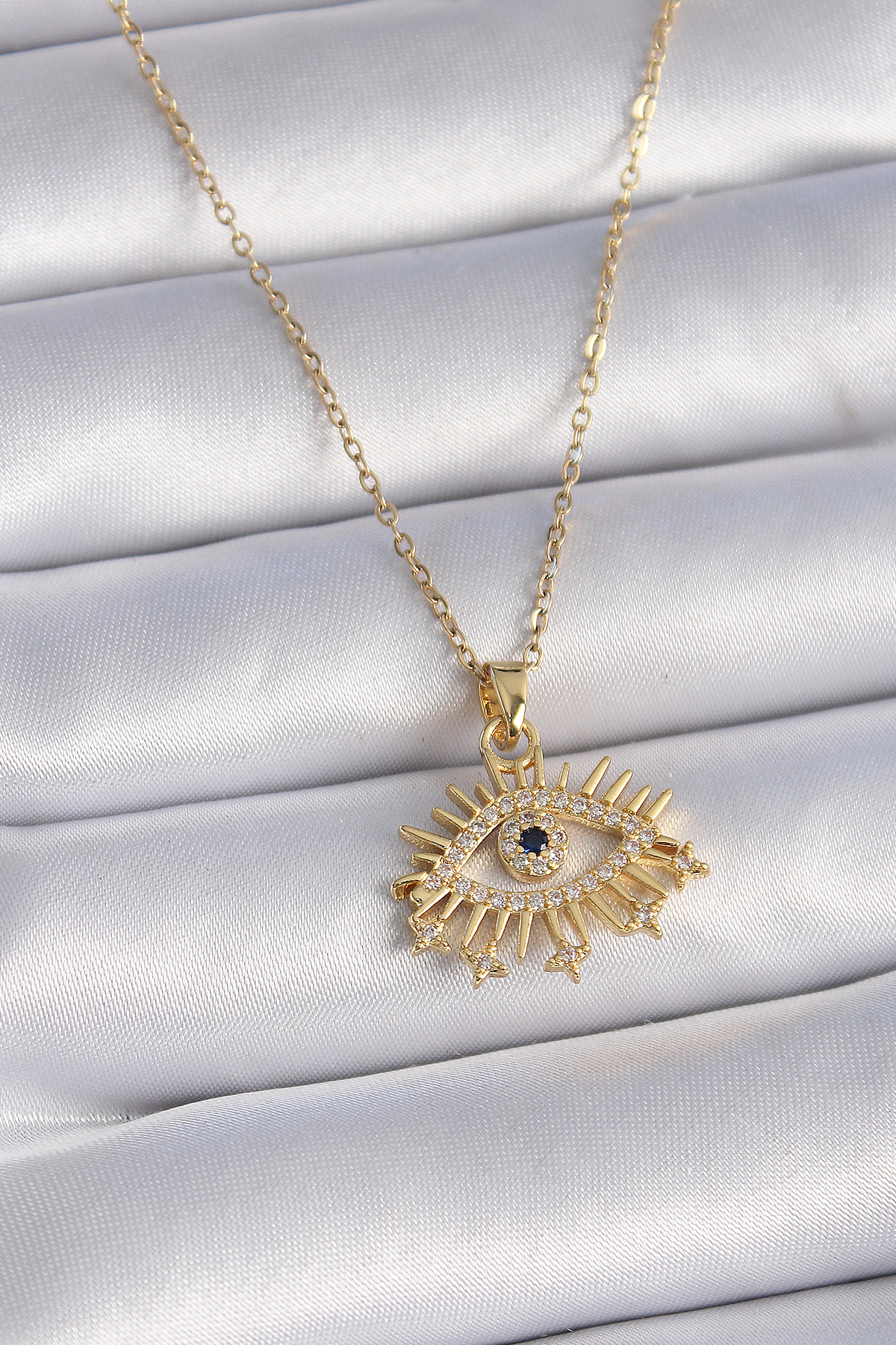 316L Çelik Gold Renk Zincir Zirkon Taşlı Göz Figür Kadın Kolye