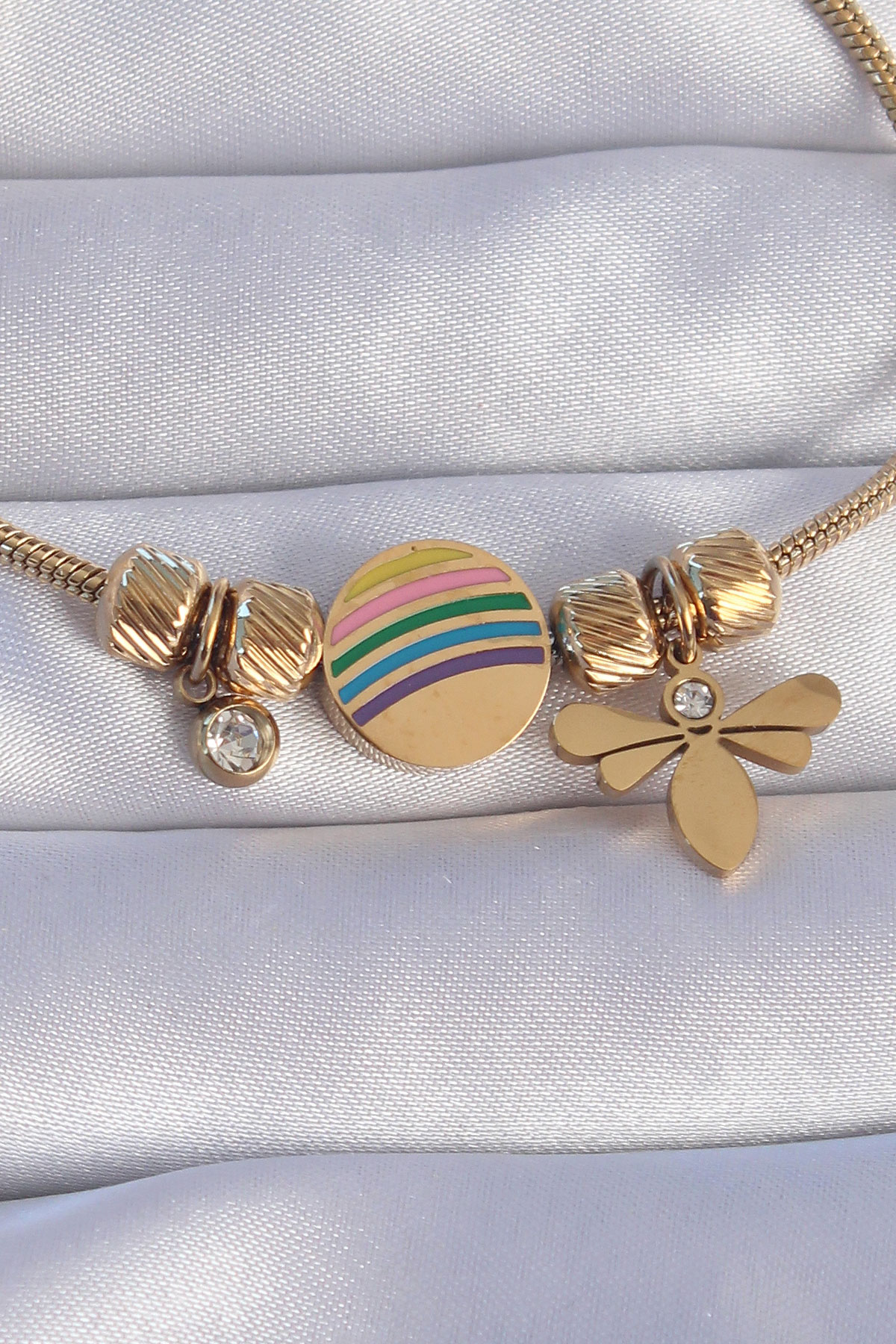 316L Çelik Gold Renk Zirkon Taşlı Gökkuşağı Tasarımlı Yusufçuk Bileklik