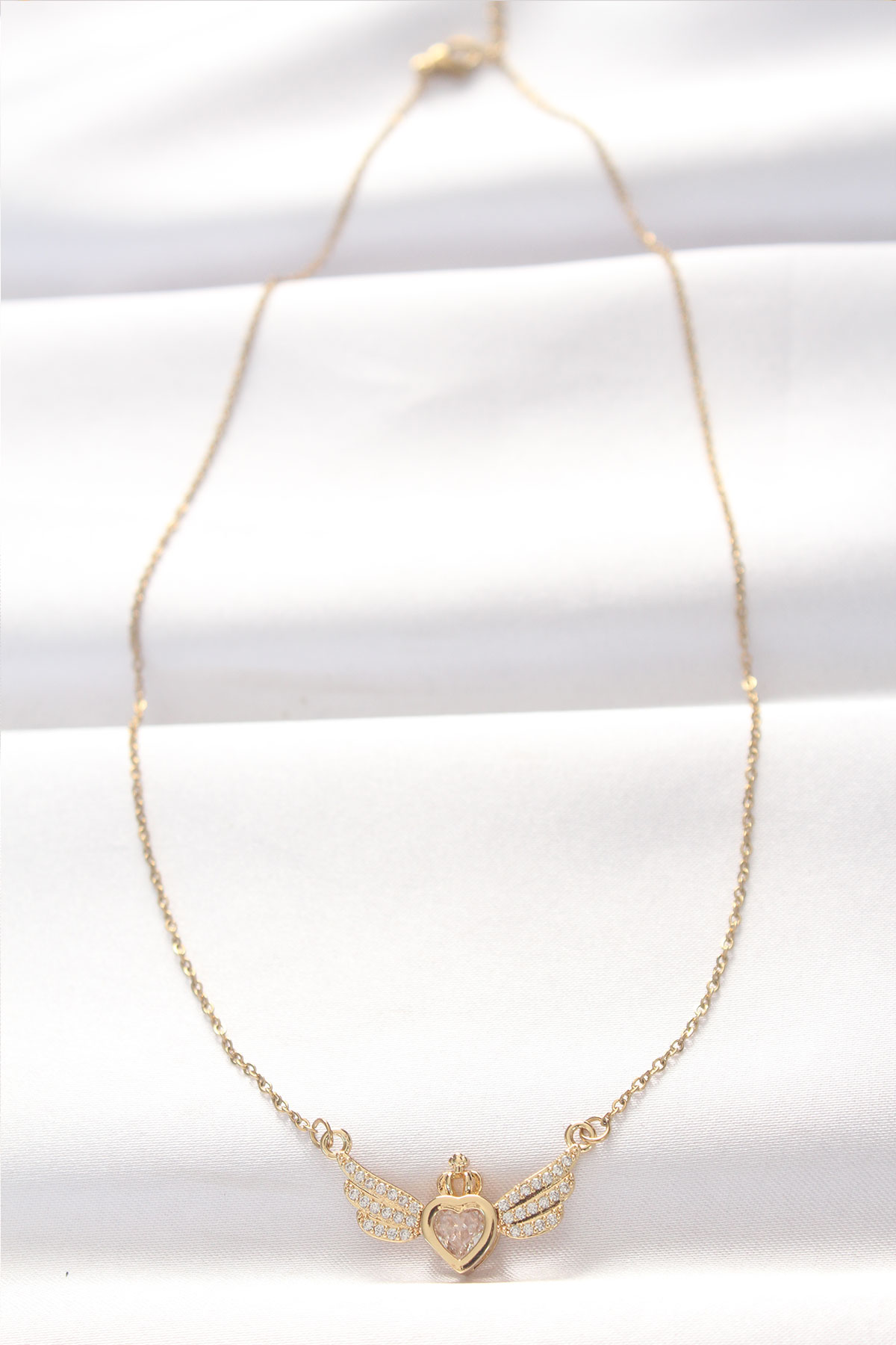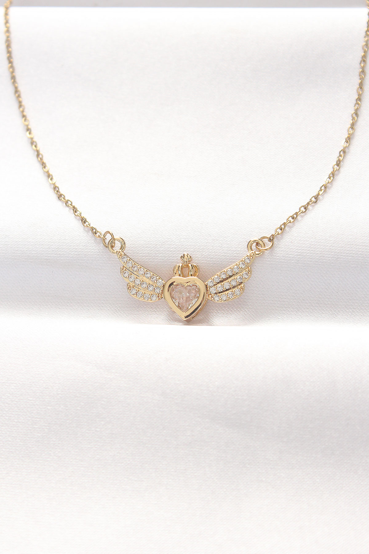 316L Çelik Gold Renk Zirkon Taşlı Kalpli Kanat Kolye