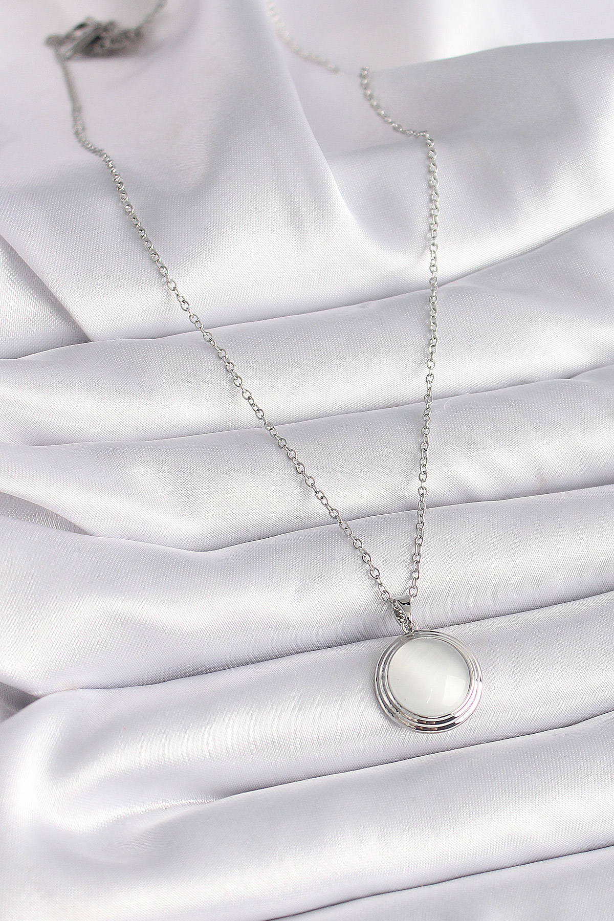 İlk yorum yapan sen ol “316L Çelik Gümüş Renk Beyaz Sedefli Daire Model Kadın Kolye”