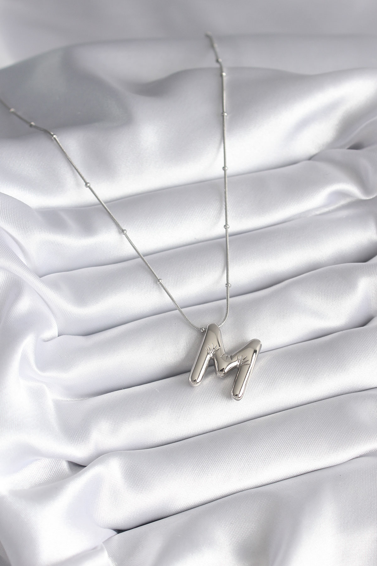 316L Çelik Gümüş Renk Bubble “M” Harf Model Kadın Kolye