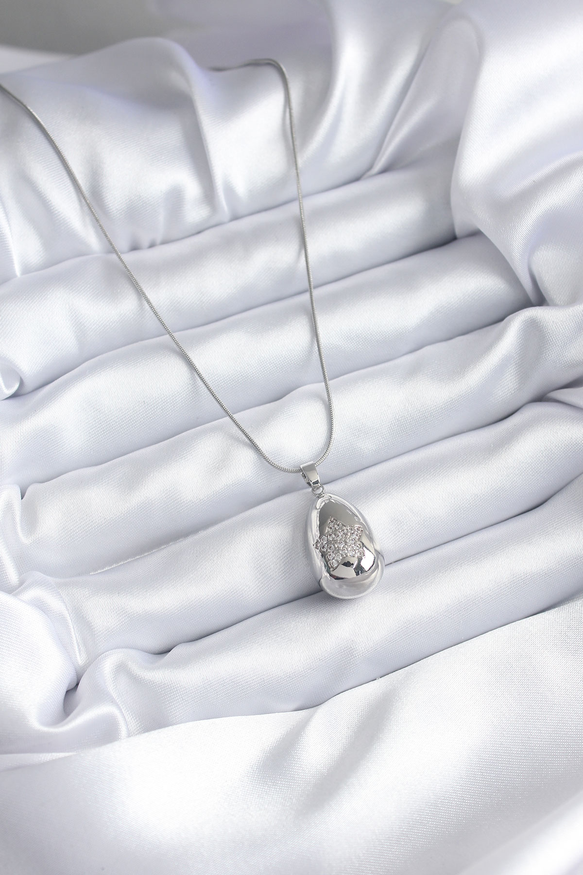316L Çelik Gümüş Renk Damla Model Yıldız İşleme Zirkon Taş Detay Kadın Kolye