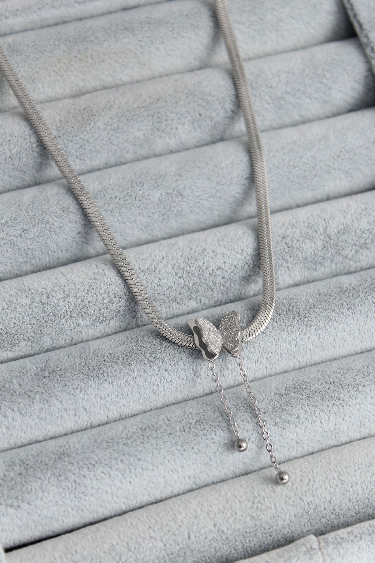 316L Çelik Gümüş Renk İtalyan Zincir Model Simli Kelebek Figür Kadın Kolye