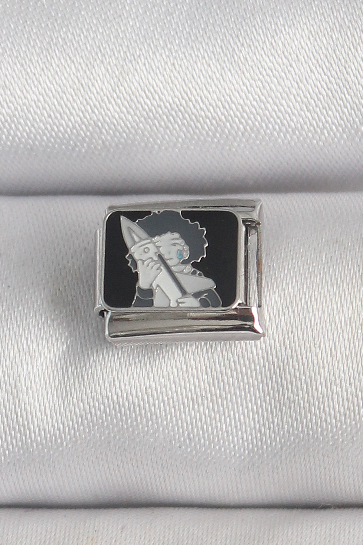 316L Çelik Gümüş Renk Siyah İşlemeli Portre Model Nomination Charm