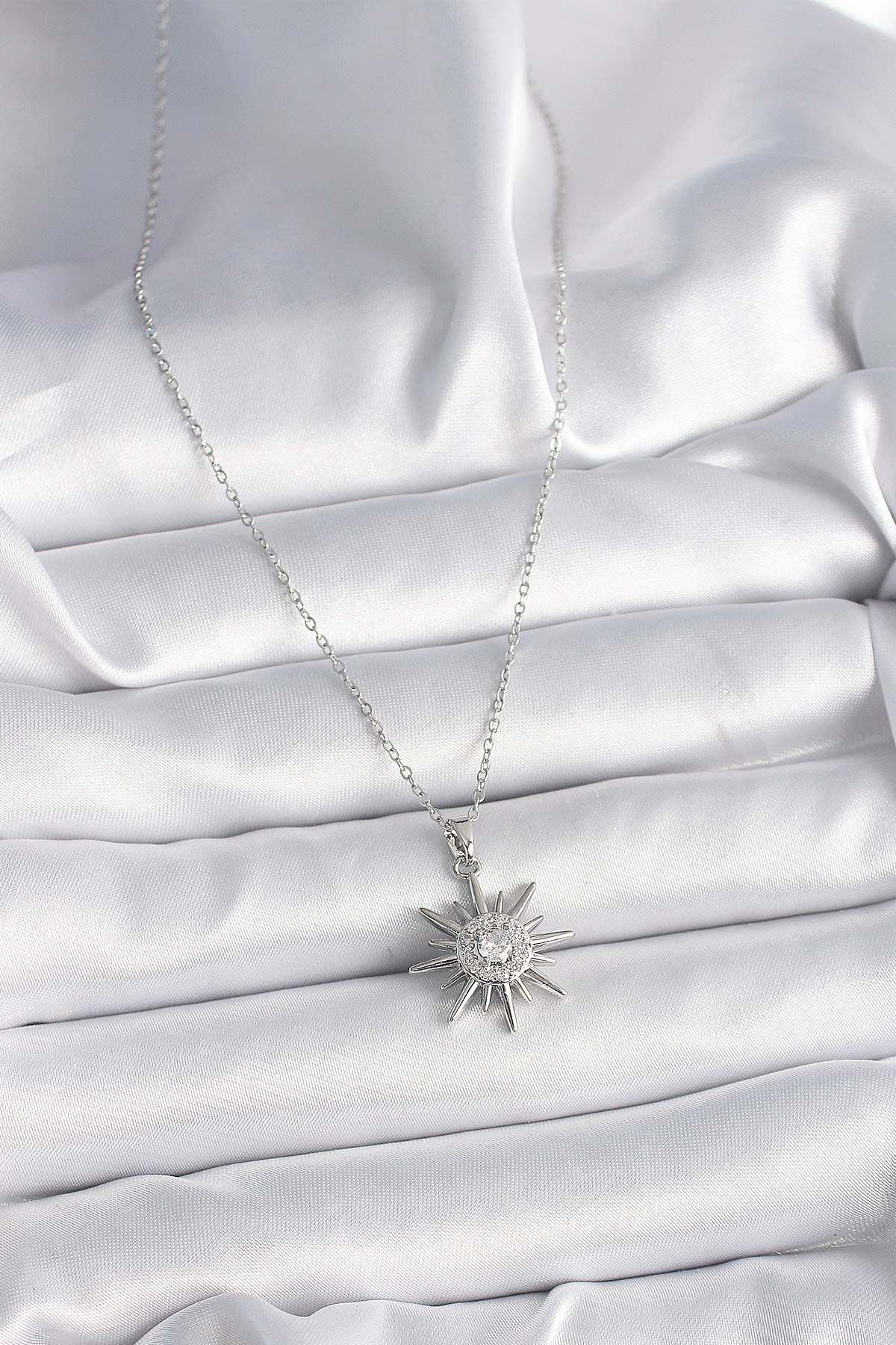 316L Çelik Gümüş Renk Zincir Zirkon Taşlı Güneş Model Kadın Yüzük