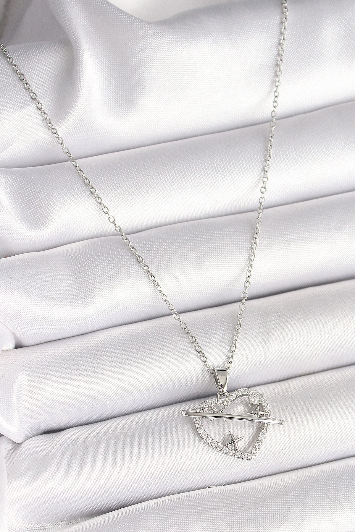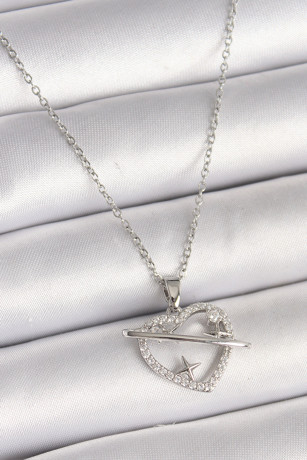 İlk yorum yapan sen ol “316L Çelik Gümüş Renk Zincir Zirkon Taşlı Kalp Model Yıldız Detay Kadın Kolye”