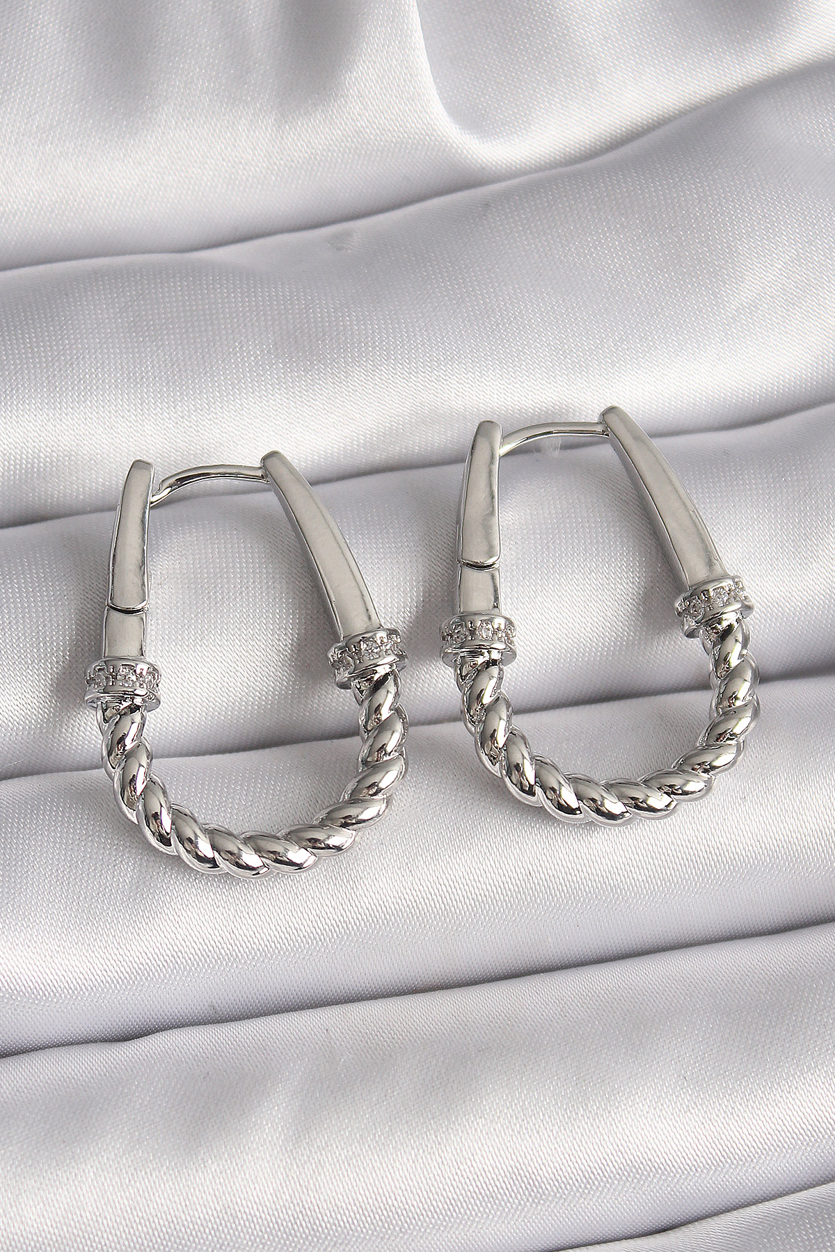 316L Çelik Gümüş Renk Zirkon Taş Detaylı Burma Halka Model Kadın Küpe