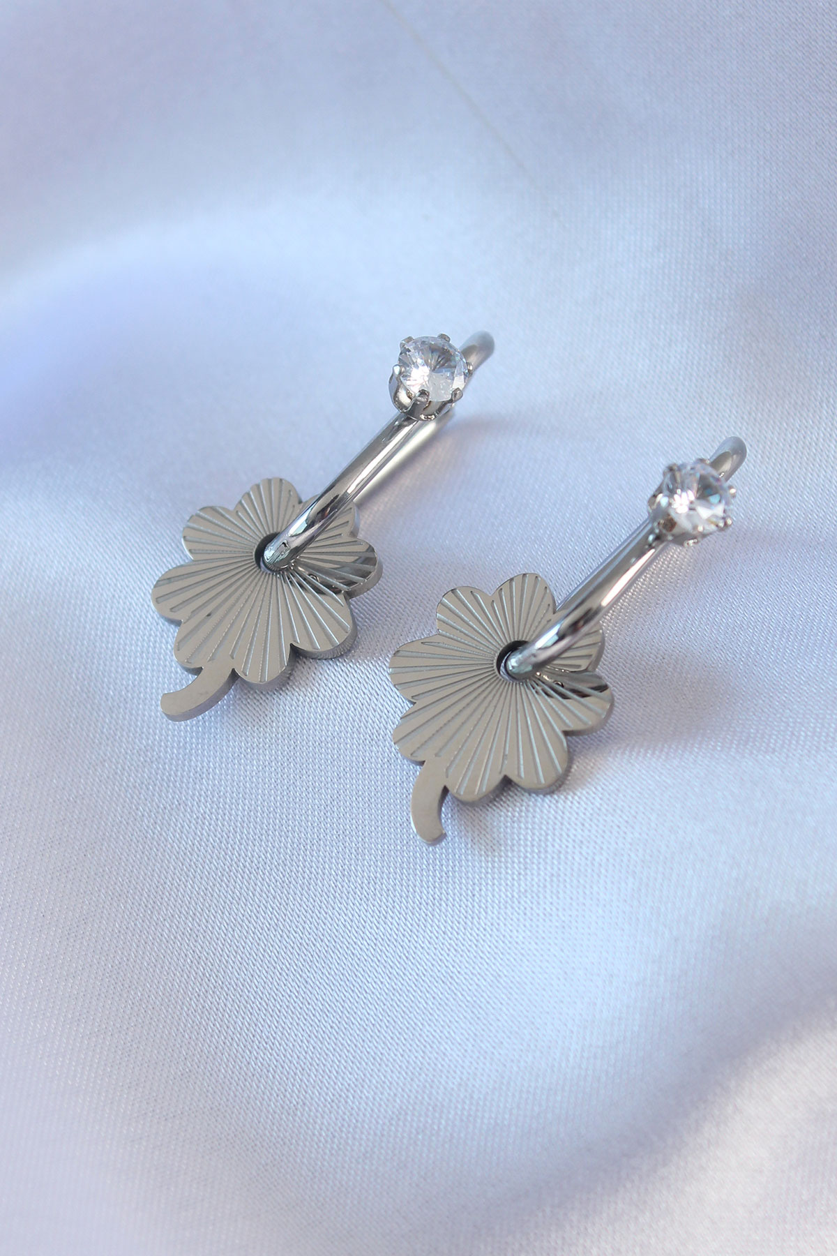İlk yorum yapan sen ol “316L Çelik Gümüş Renk Zirkon Taşlı Kadın Göçmen Küpesi”