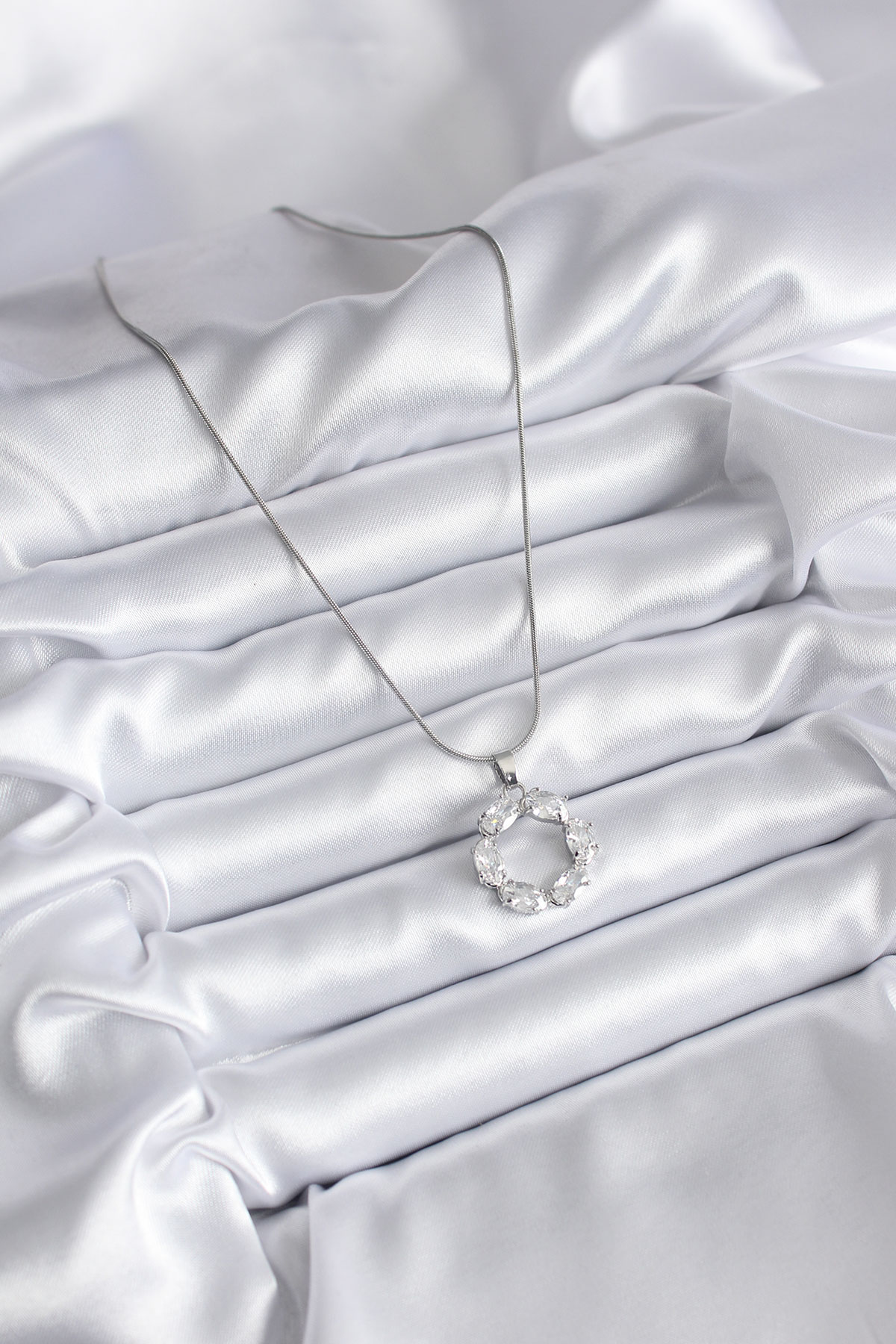 316L Çelik Gümüş Renk Zirkon Taşlı Kadın Kolye