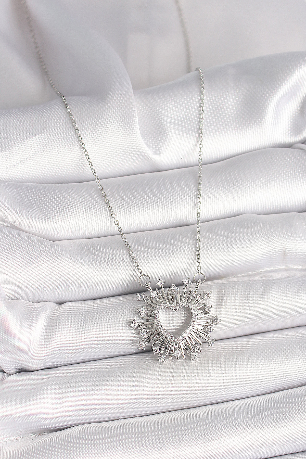 316L Çelik Gümüş Renk Zirkon Taşlı Kalp Model Kadın Kolye