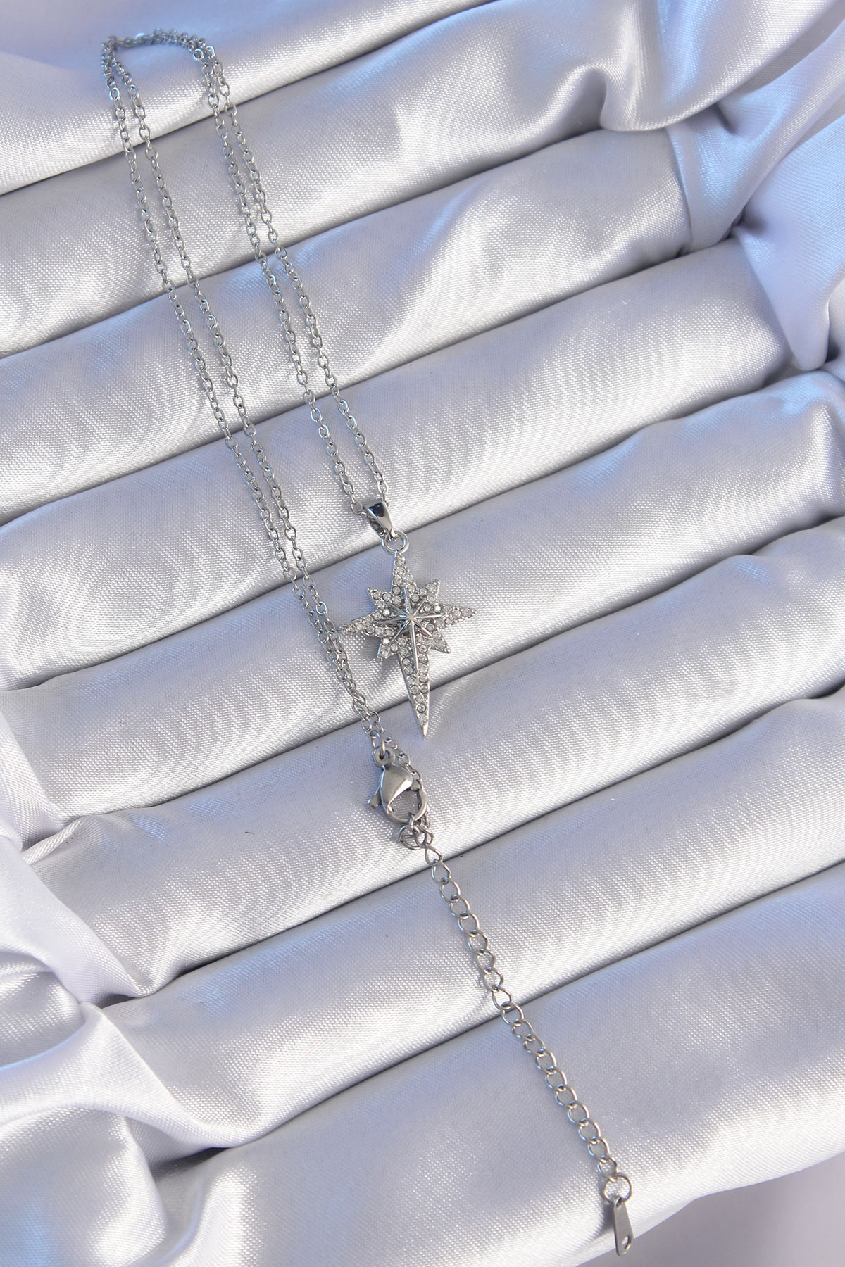316L Çelik Gümüş Renk Zirkon Taşlı Kutup Yıldızı Model Kolye