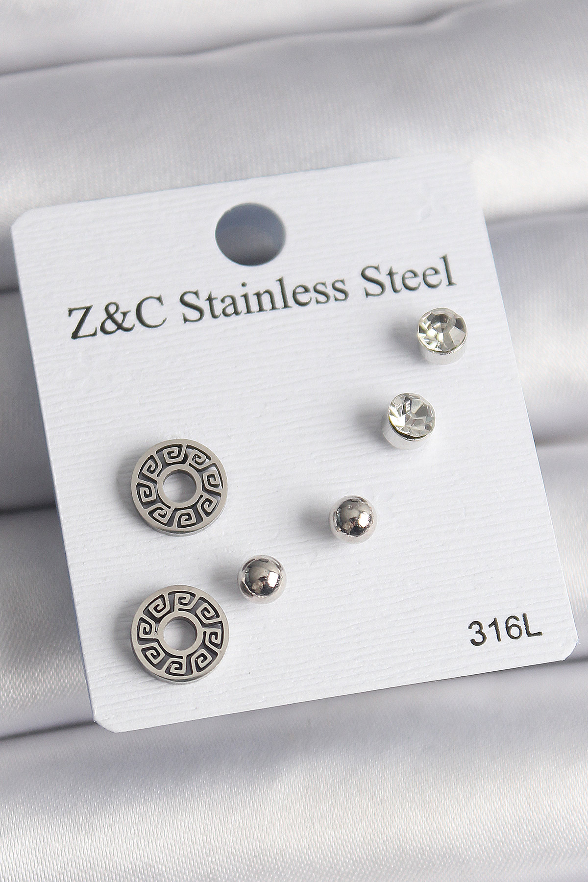 316L Çelik Gümüş Renk Zirkon Taşlı Labirent Model Kadın Küpe Seti