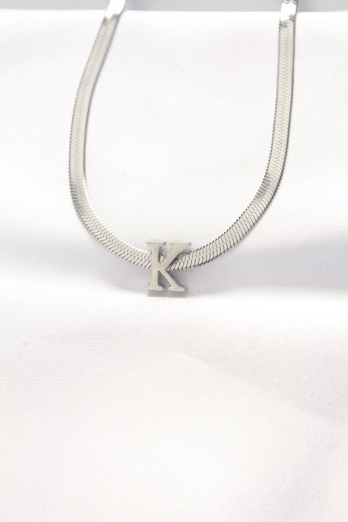 316L Çelik K Harfli Silver Renk İtalyan Zincirli Kolye