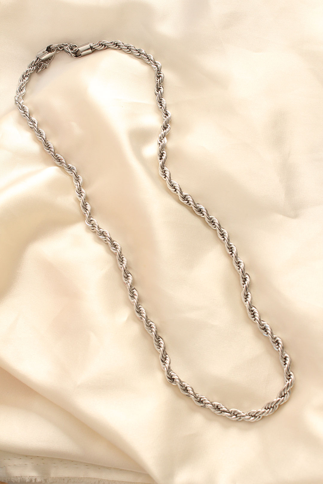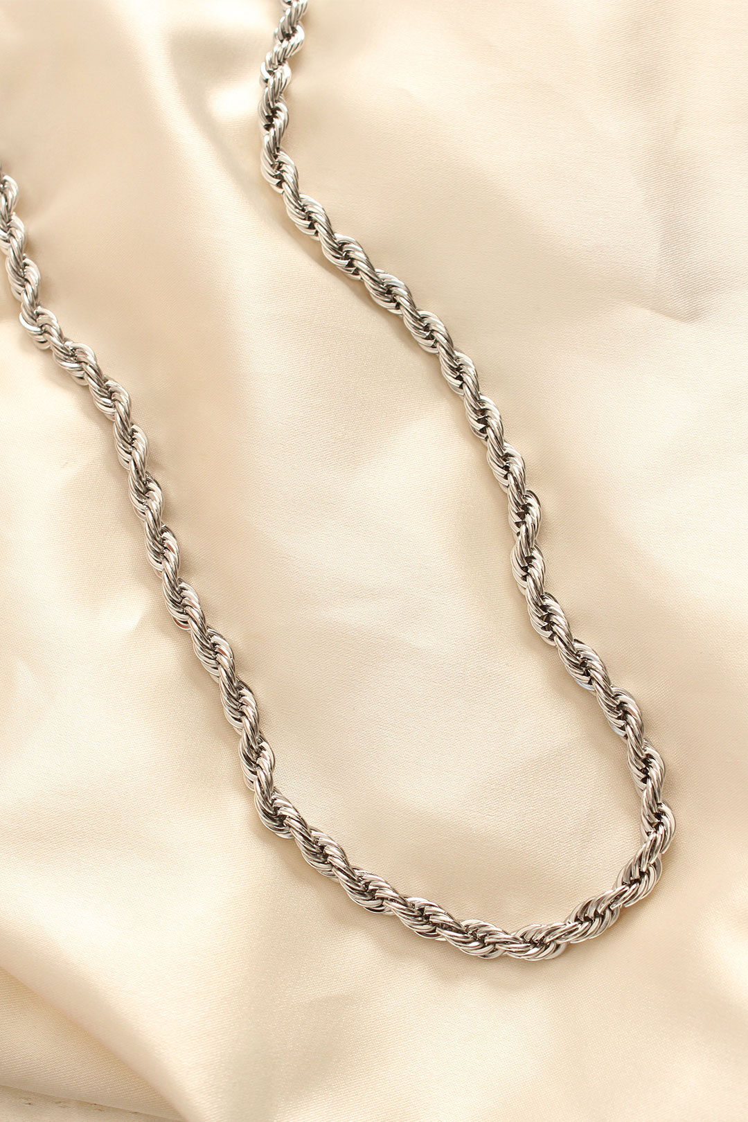 316L Çelik Kararmaz Gümüş Renk Kalın Burgu 60 cm Kadın Kolye