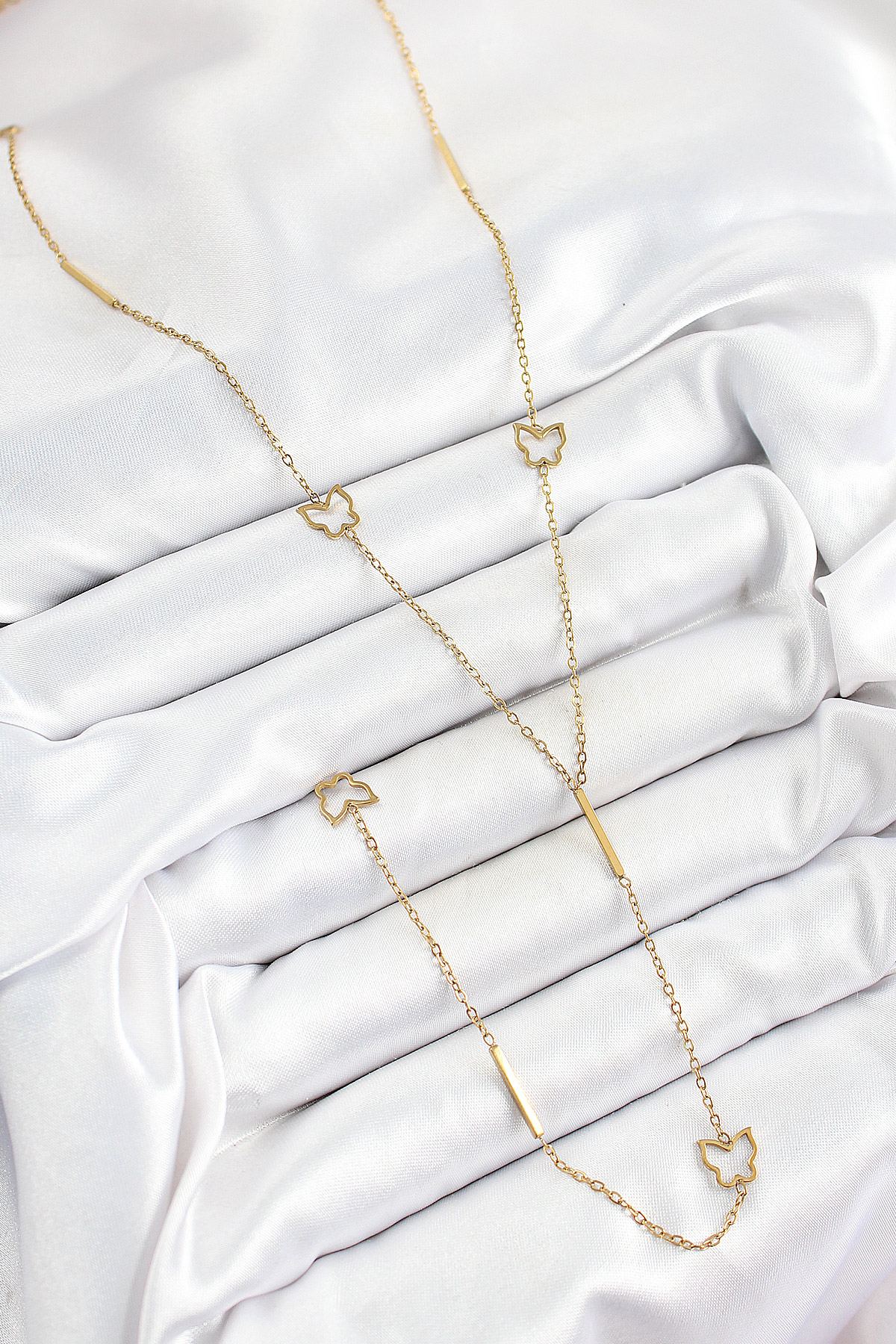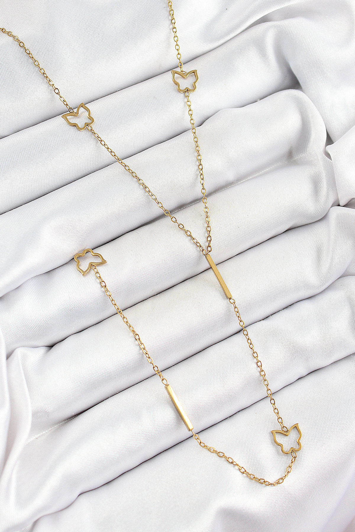 316L Çelik Kelebek Figürlü Y Model Gold Renk Kadın Kolye