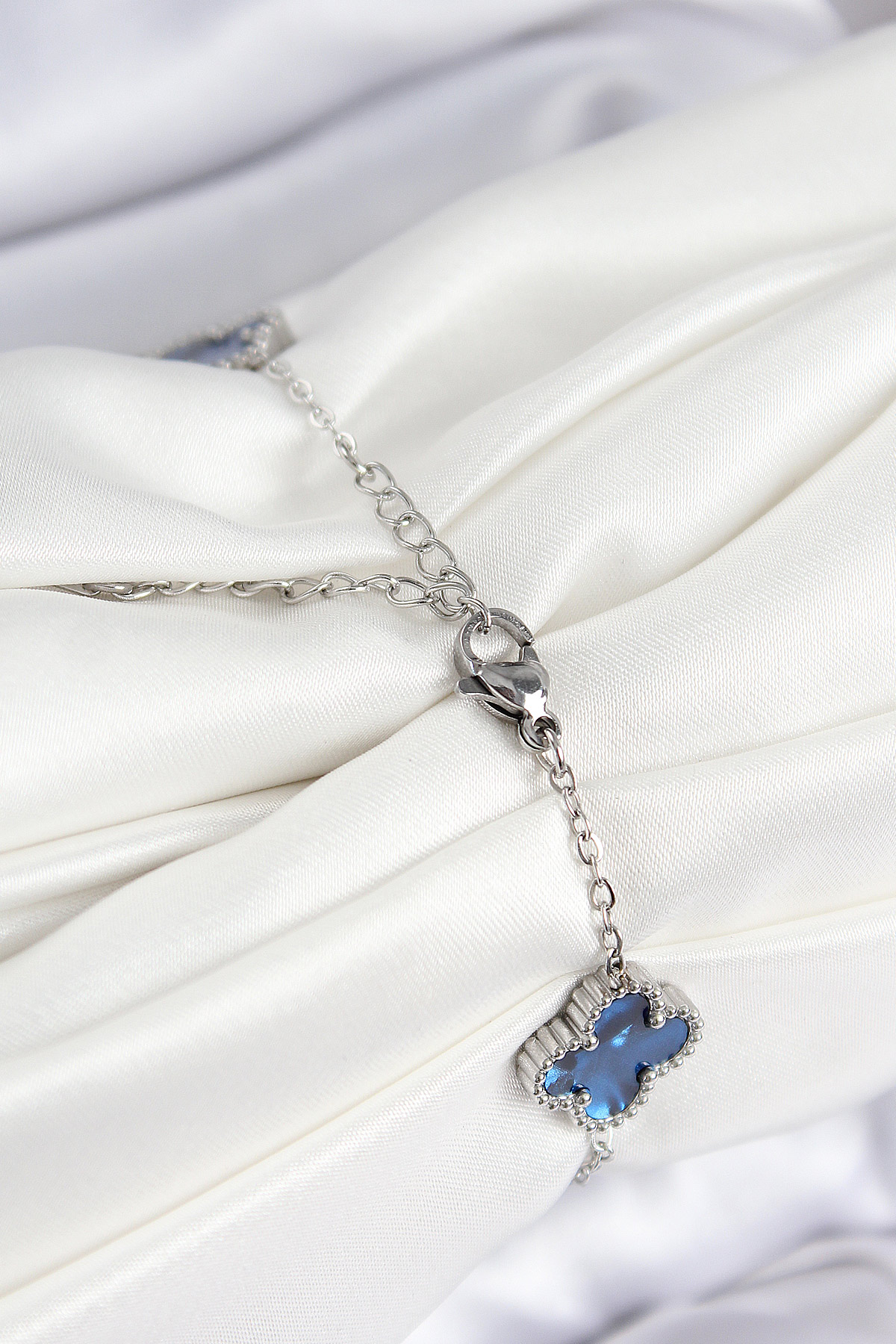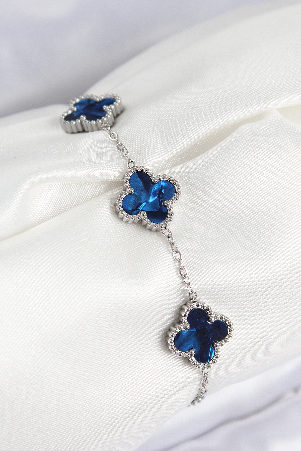 316L Çelik Sedefli Lacivert Gümüş Renk Yonca Kadın Bileklik