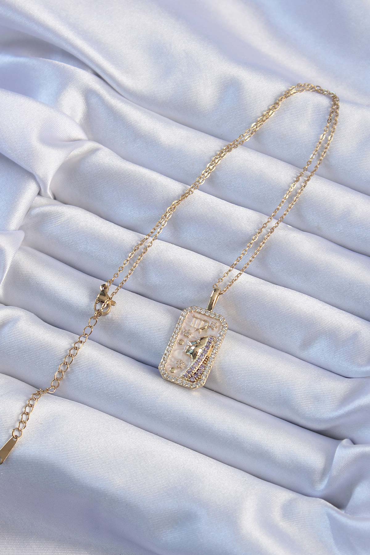 316L Çelik Zincir Altın Renk Zirkon Taşlı Yüz Figürlü Tarot Kolye