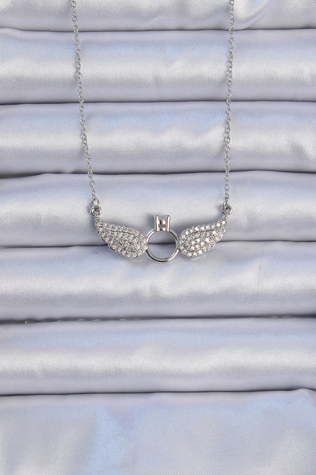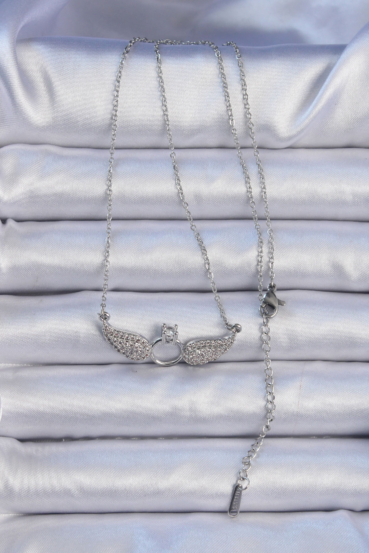 316L Çelik Zincir Gümüş Renk Kanatlı Tektaş Kolye