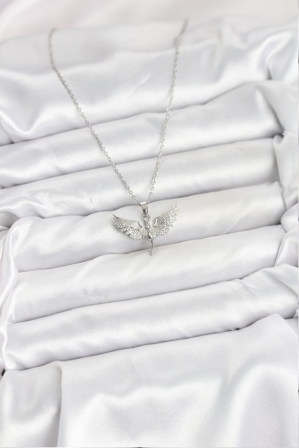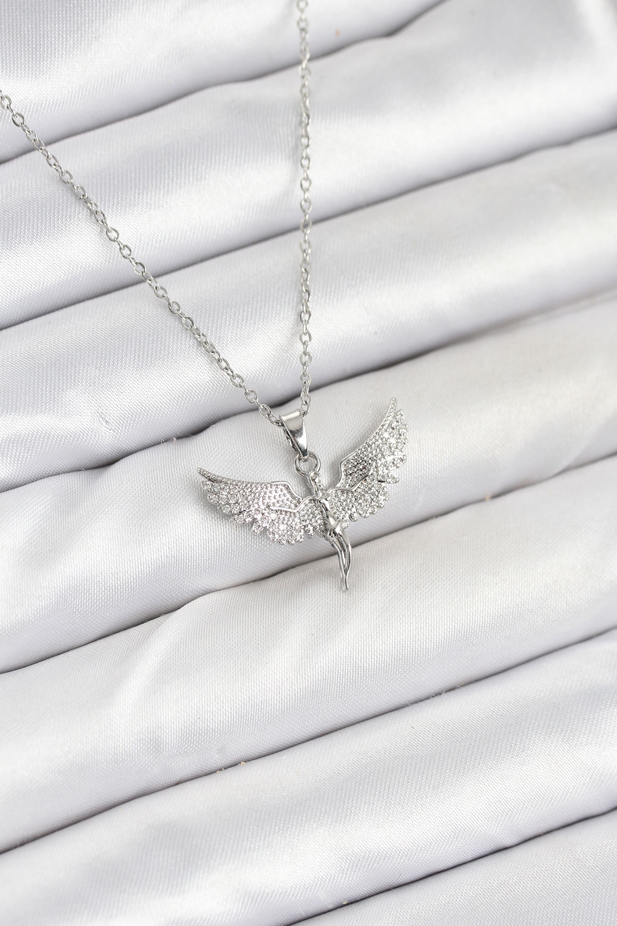 İlk yorum yapan sen ol “316L Çelik Zincir Gümüş Renk Melek Model Kadın Kolye”