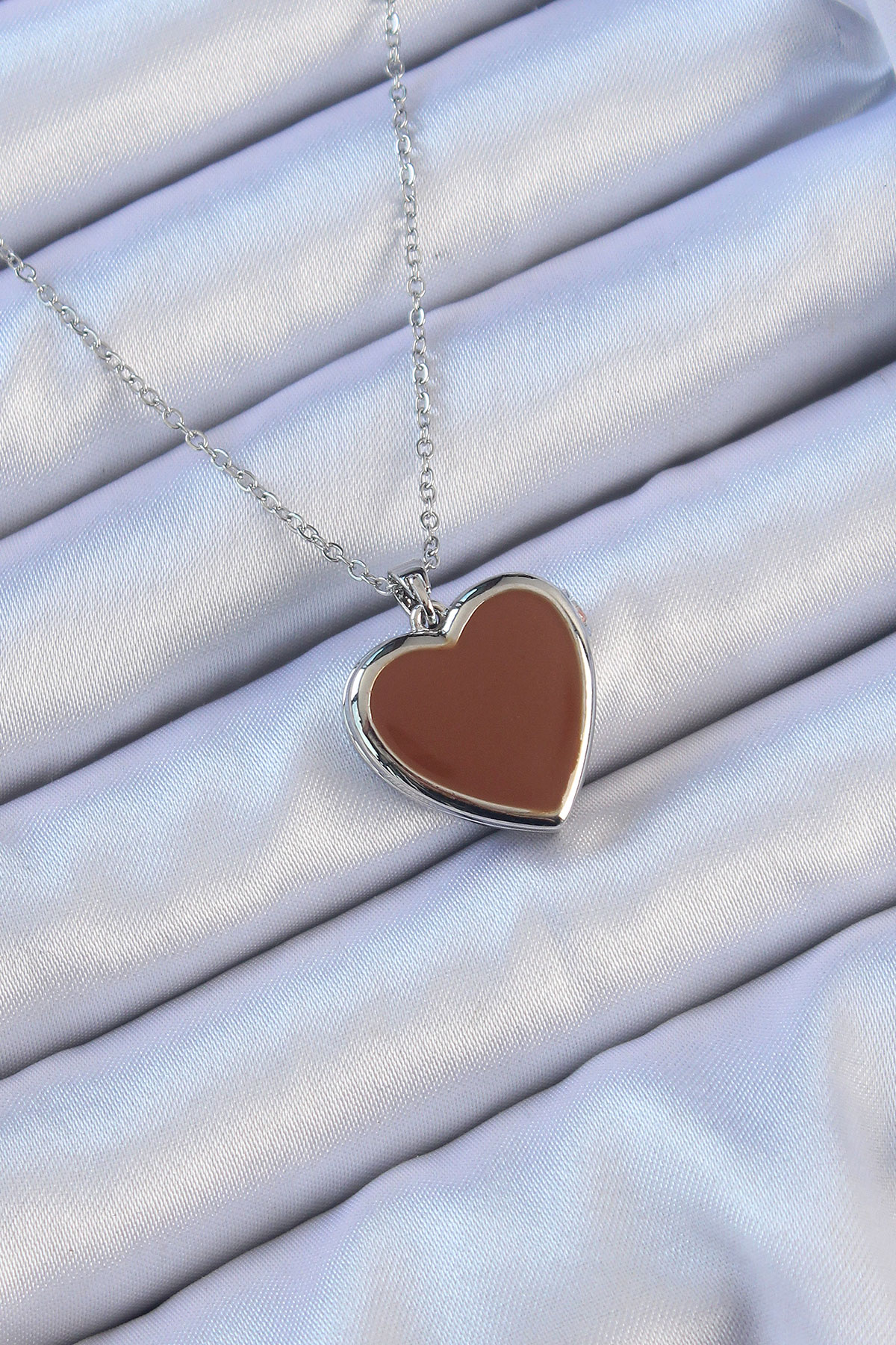 316L Çelik Zincir Gümüş Renk Mineli İçi Açılan Kalp Kolye