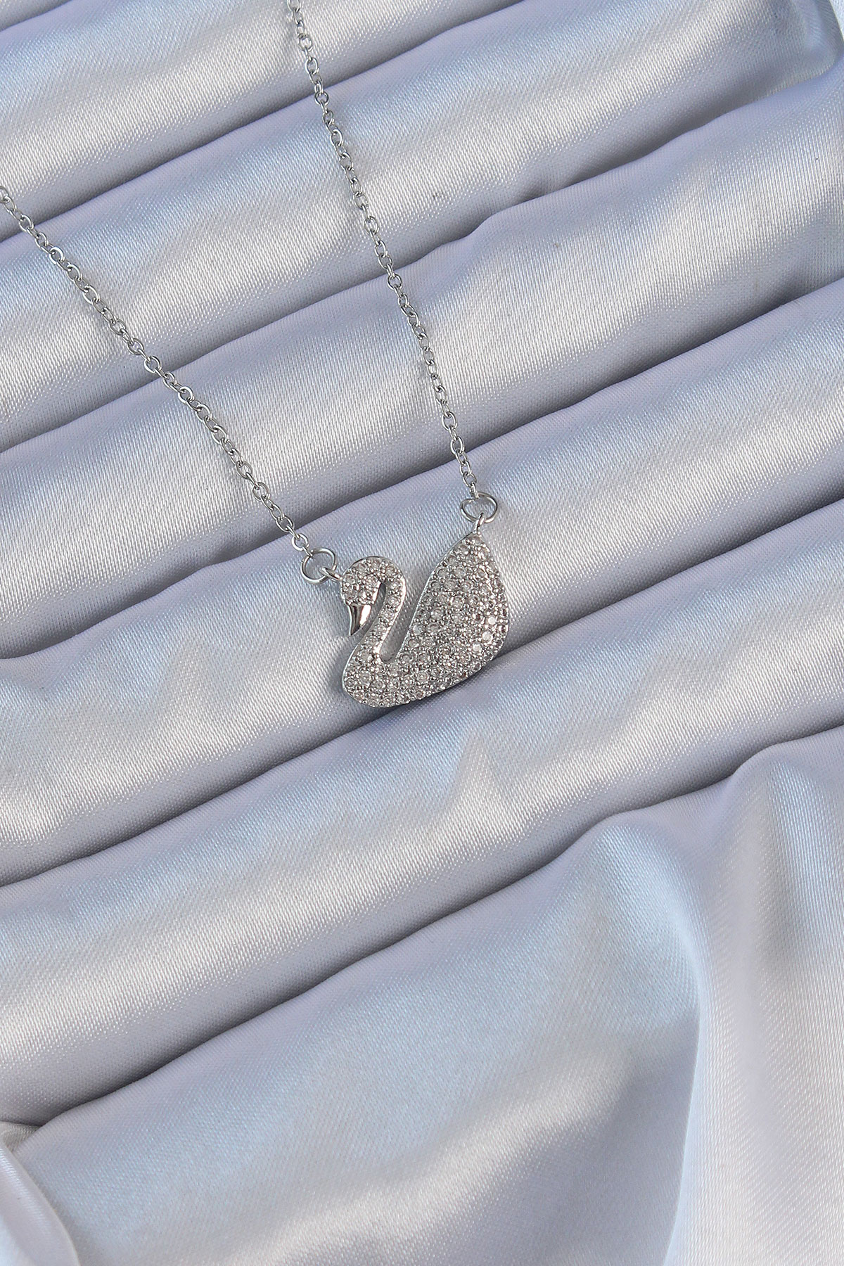İlk yorum yapan sen ol “316L Çelik Zincir Gümüş Renk Zirkon Taşlı Kuğu Kolye”
