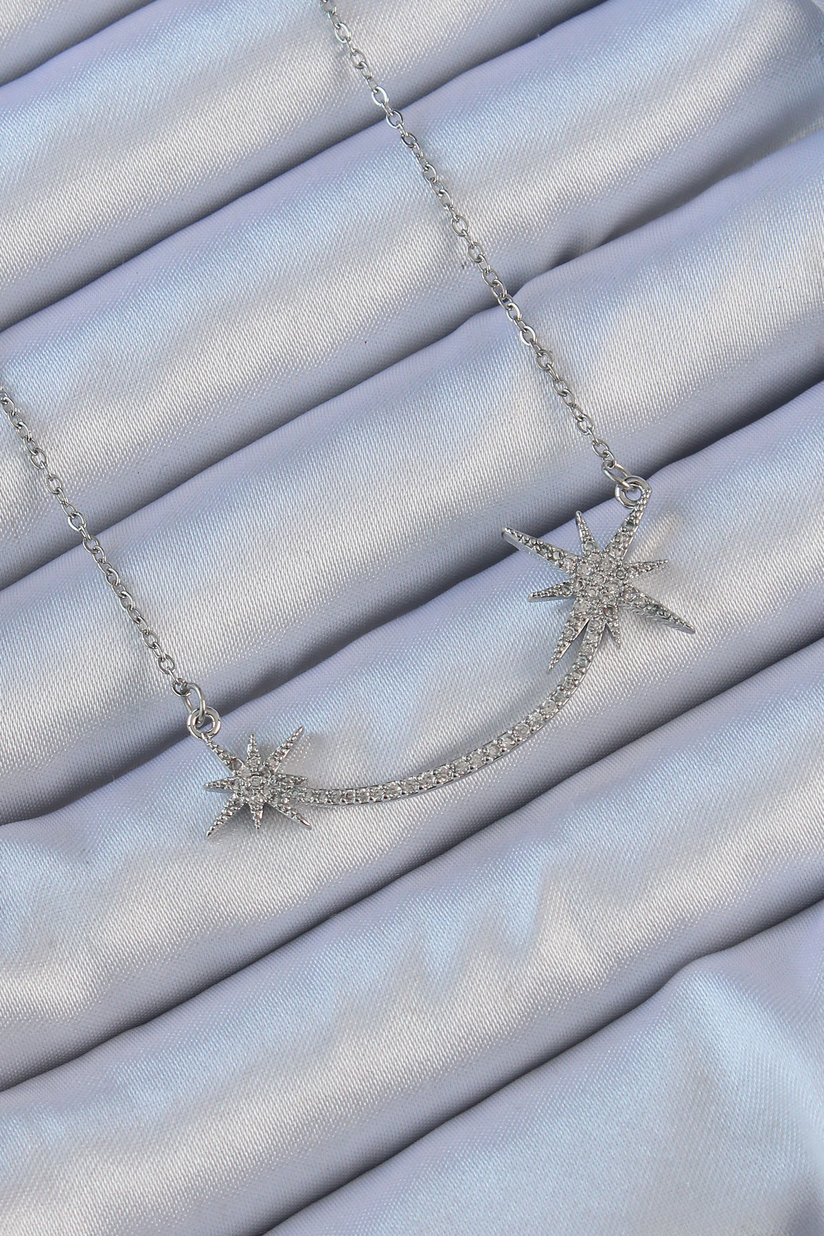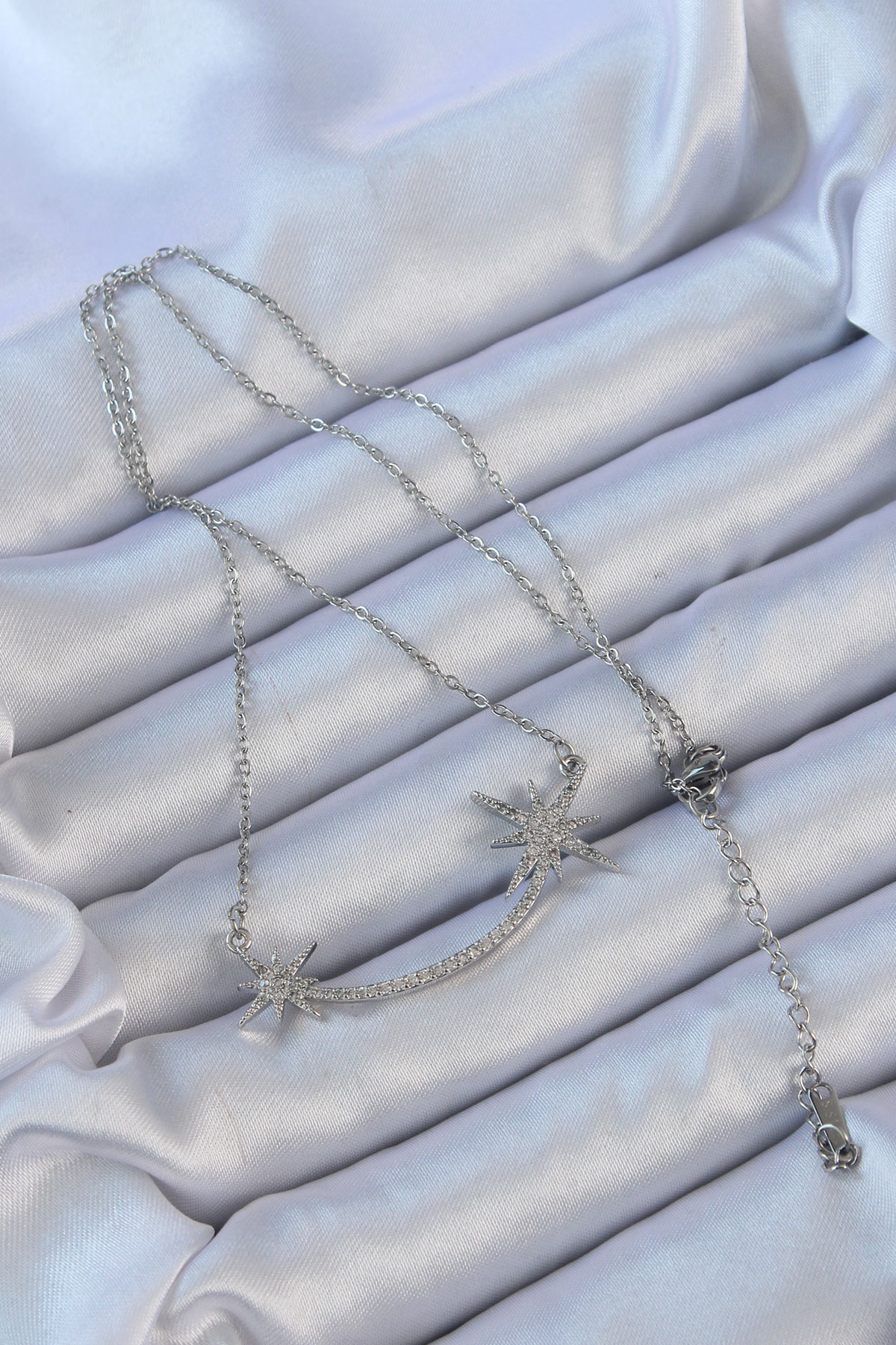 316L Çelik Zincir Gümüş Renk Zirkon Taşlı Kutup Yıldızı Kolye
