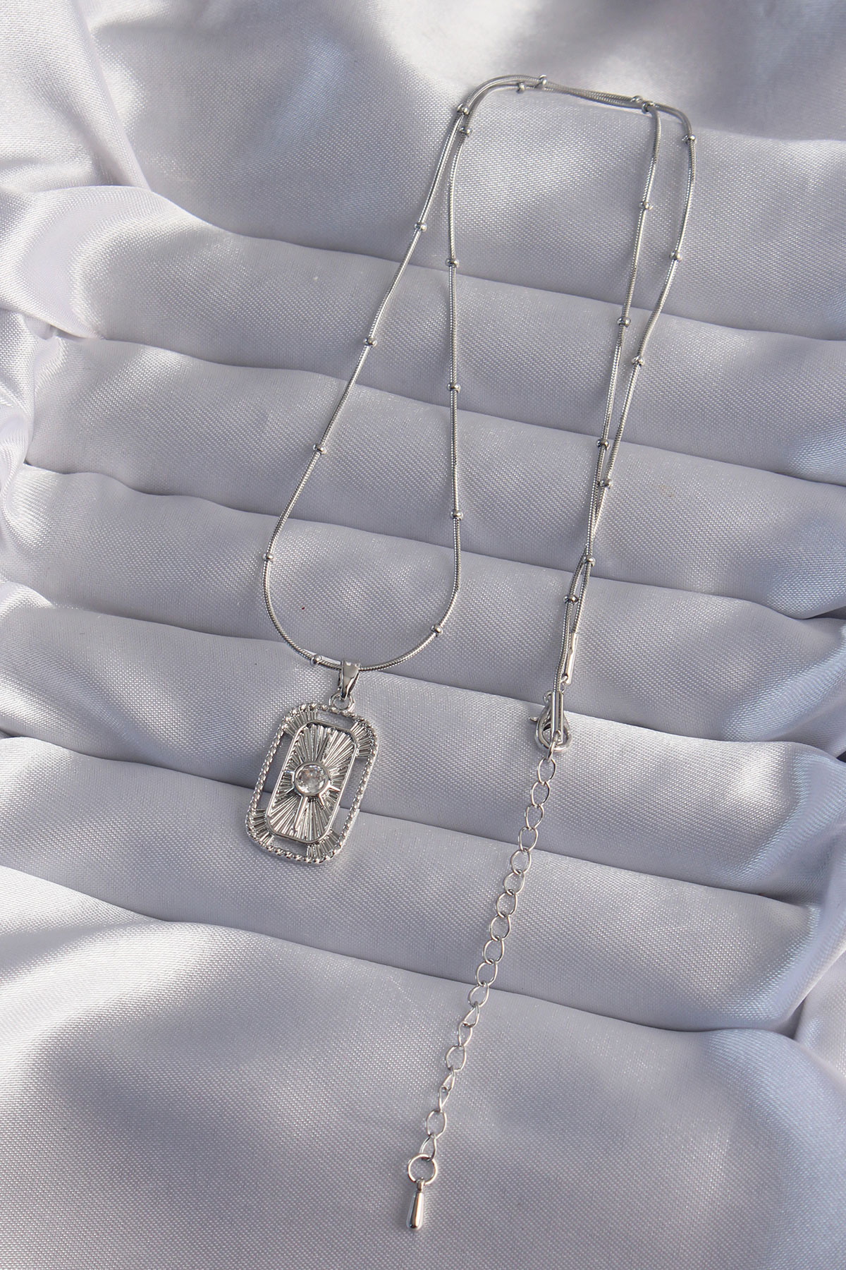 316L Çelik Zincir Gümüş Renk Zirkon Taşlı Tarot Kolye