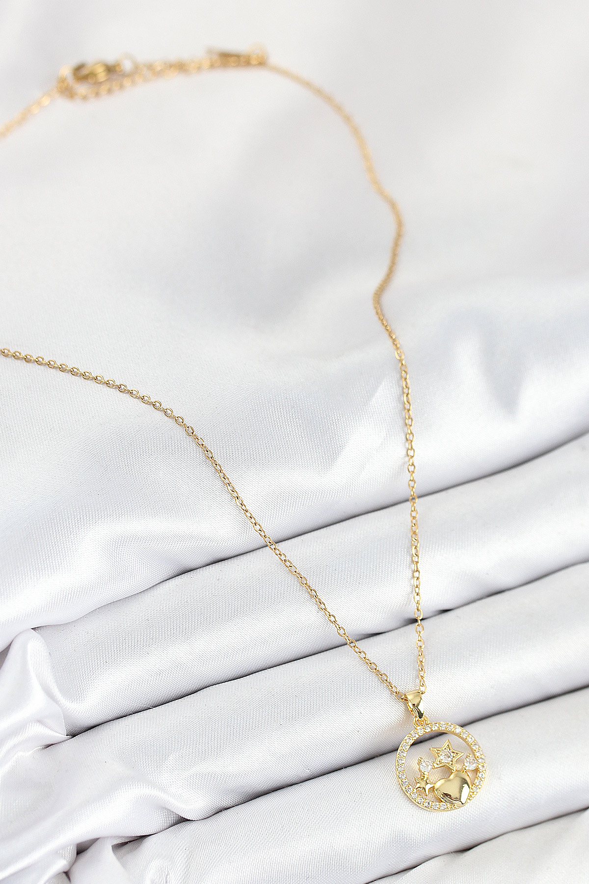 316L Çelik Zirkon Taşlı Yıldız Ve Kalp Model Gold Renk Kadın Kolye