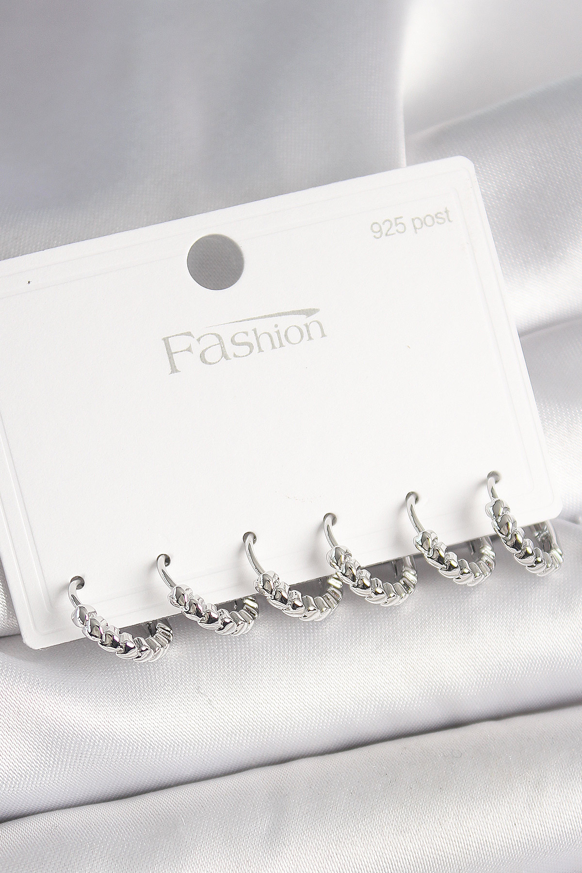 925 Ayar Gümüş Çivi Pirinç Gümüş Renk Kalp İşlemeli Halka Model Kadın Küpe Seti