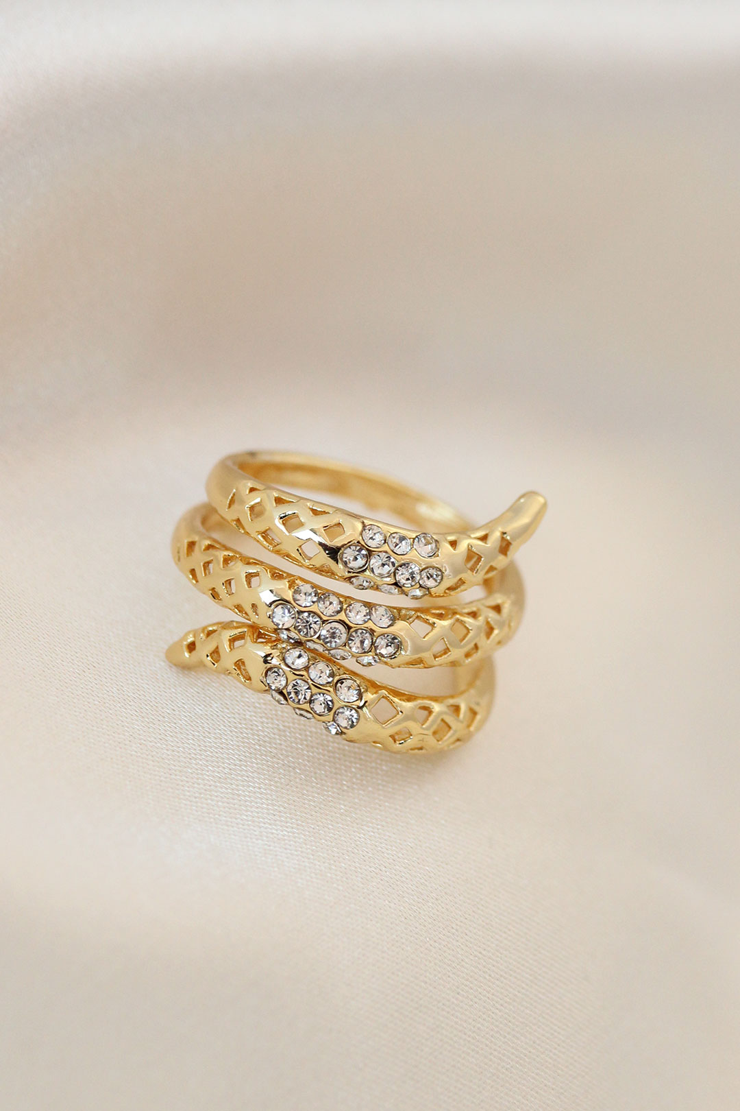 Ayarlamalı Altın Renk Metal Zirkon Taşlı Yüzük