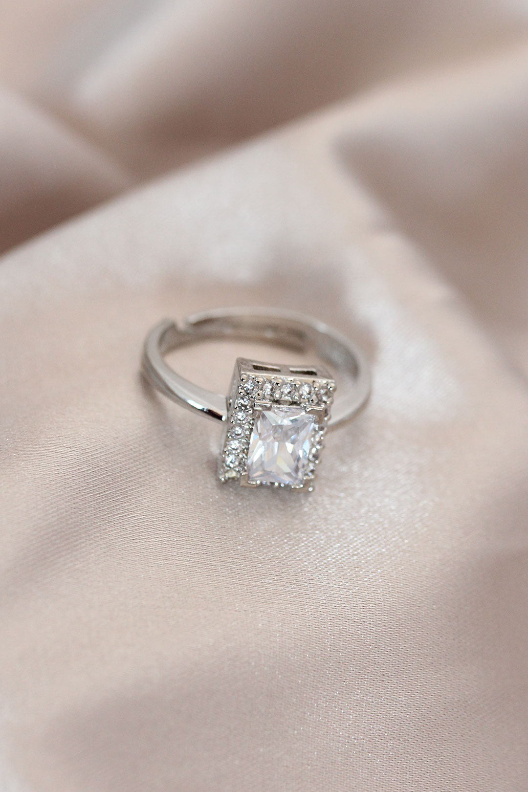 Ayarlamalı Silver Renk Metal Zirkon ve Kristal Taşlı Dikdörtgen Model Yüzük