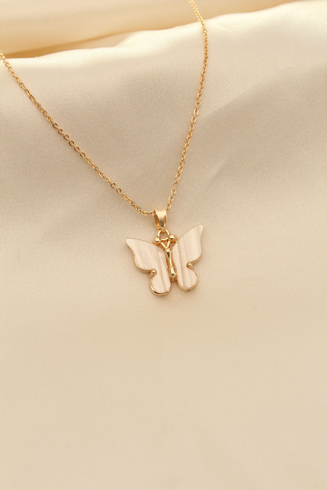 Beyaz Sedefli Kelebek Figürlü Kadın Kolye