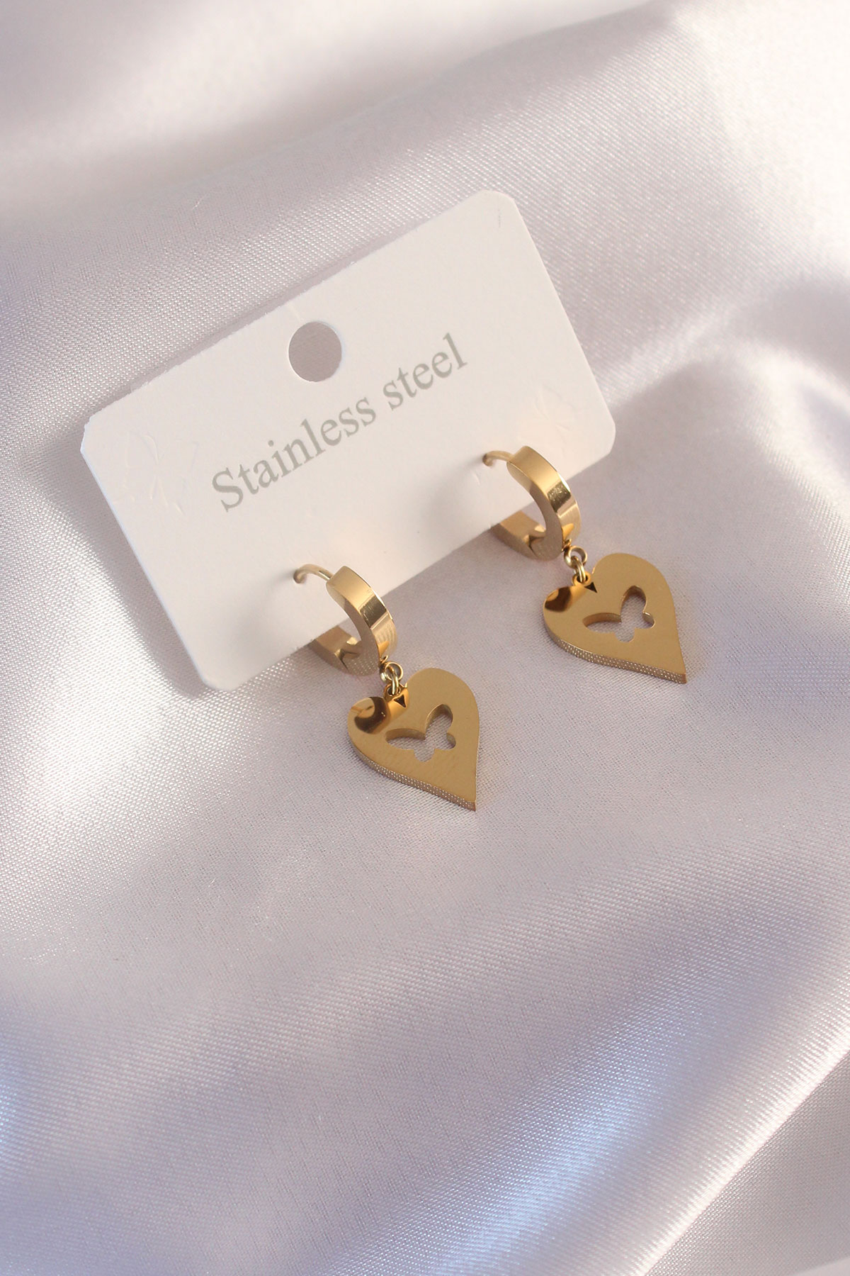 İlk yorum yapan sen ol “Çelik Gold Renk Kalp Model Kelebek Detay Kadın Küpe”