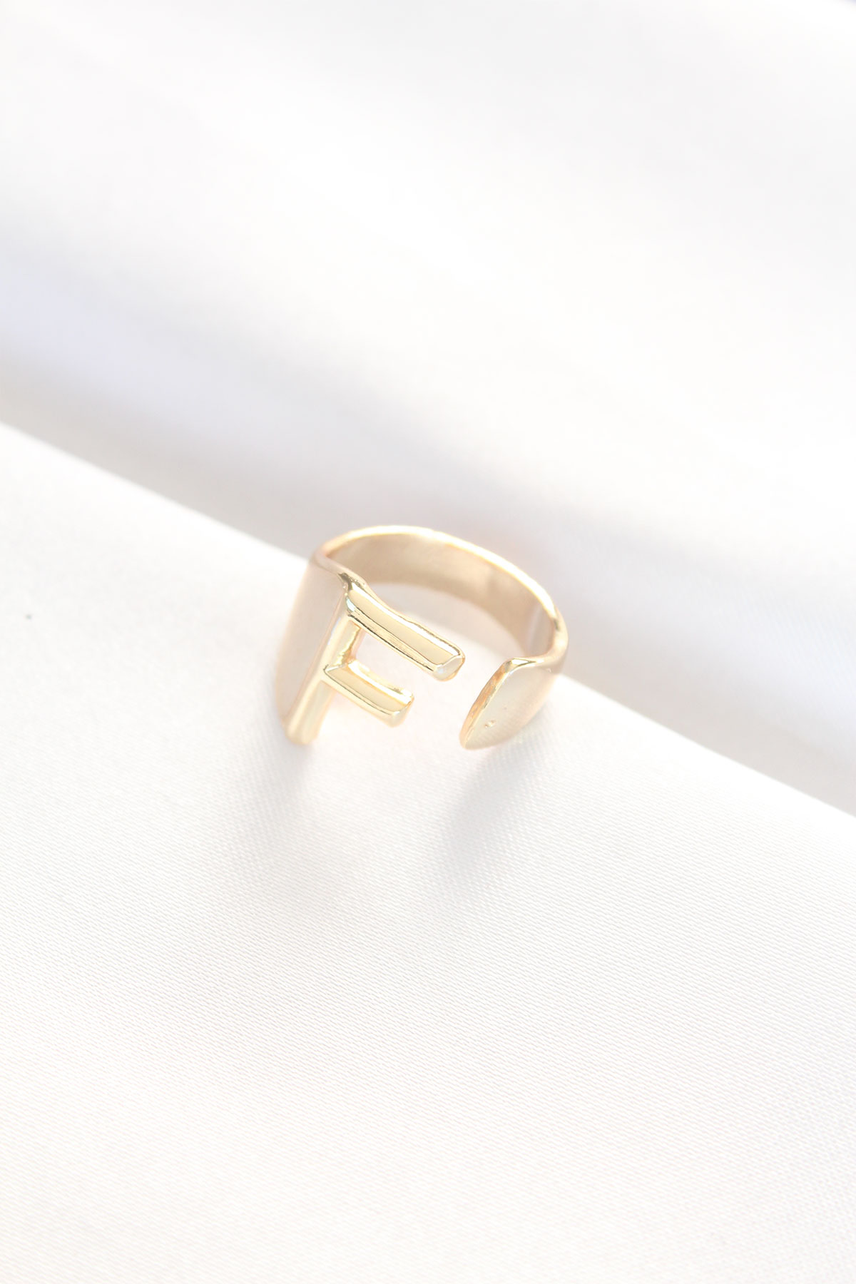 F Harfli Altın Renk Ayarlanabilir Yüzük