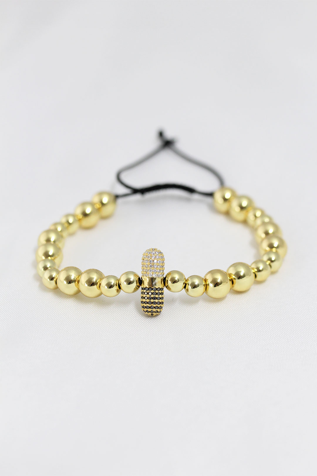 Gold Renk Çelik Zirkon Objeli Asansörlü Bileklik
