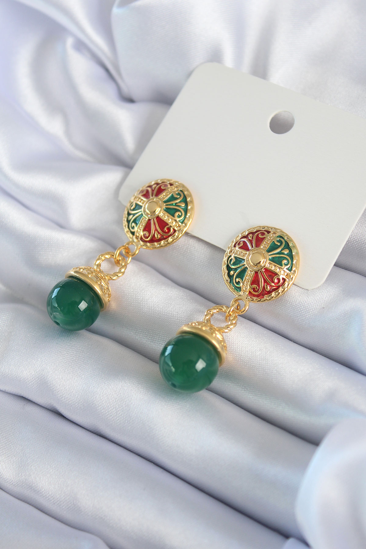Gold Renk Motif İşlemeli Sallantı Model Pirinç VİP Kadın Küpe