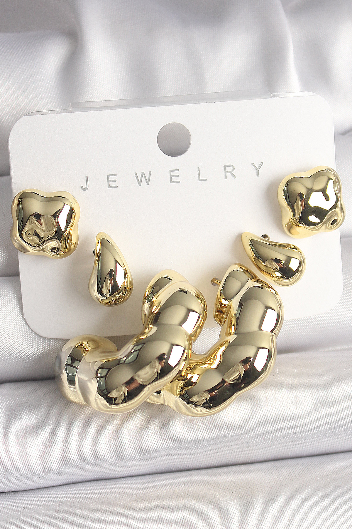 İlk yorum yapan sen ol “Gold Renk Yonca Damla Halka Model CCB Plastik Kadın Küpe Seti”