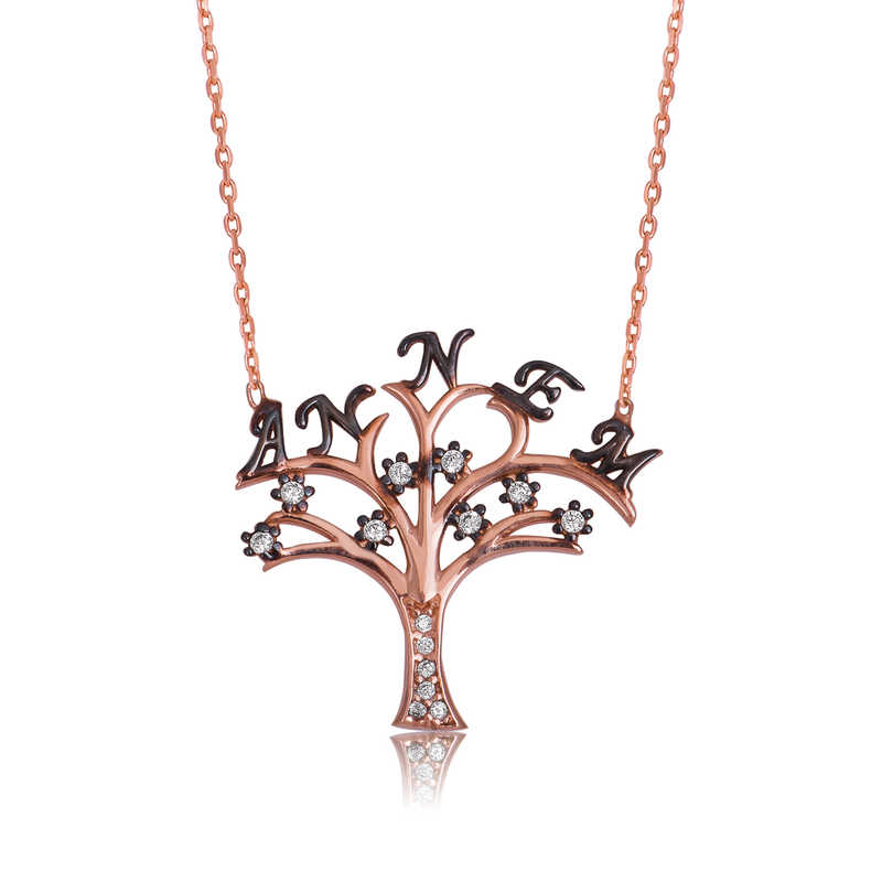Hayatta en değerli varlığınız olan biricik anneniz için en güzel hediyelerden biri olan bu annem yazılı hayat ağacı bayan kolye ile hayat boyunca annenize olan sevginizin simgesi olacaktır. Annem yazılı hayat ağacı bayan kolye 925 ayar gümüşten imal edilmiştir. Gümüş üzerine rose kaplama yapılmıştır. Rose kaplama yapılan gümüş bayan kolye modelleri parlaklığını uzun süre muhafaza eder ve oksitlenmesi gecikir. Kolye üzerinde bulunan taşlar zirkondur. Gümüş olan zincir boyu ortalama 45 cm"dir. Tüm gümüş bayan kolye modellerinde olduğu gibi bu anlamlı annem yazılı hayat ağacı bayan kolye de el emeği ile üretilmiştir. Gümüş ve değerli taşlar nedeniyle belirtilen ürün ağırlığında ± %10 sapma olabilmektedir.