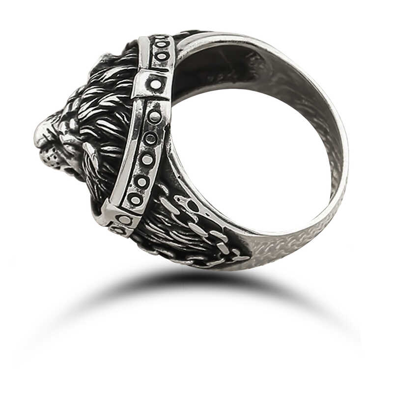 Gümüş Aslan Figürlü Erkek Yüzük