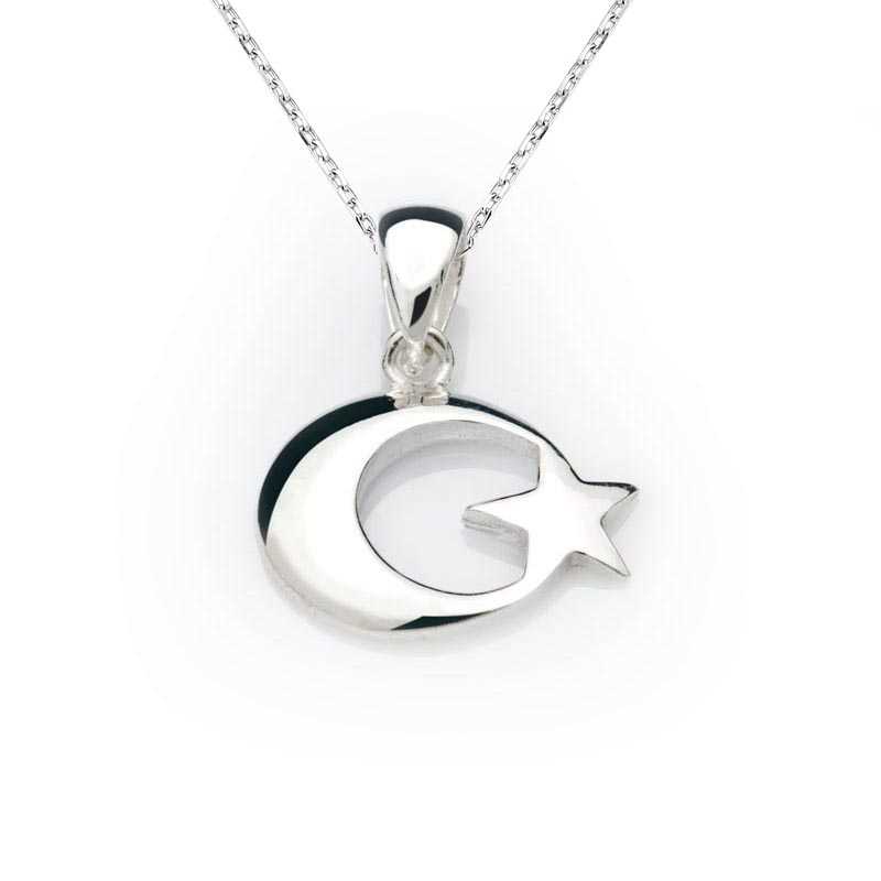 Gümüş Ay Yıldız Bayrak Kolye Ay Yıldız Kolyeler Gümüş Ay Yıldız Bayrak KolyeTürk bayrağının ilhamını da kan gölüne yansıyan ay ve yıldızdan aldığını biliyoruz. Bayrağın taşıdığı kutsal anlamı taşımak