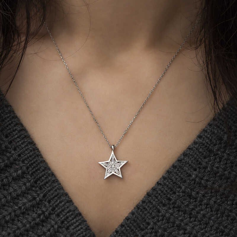 Gümüş Baget Taşlı Yıldız Kolye