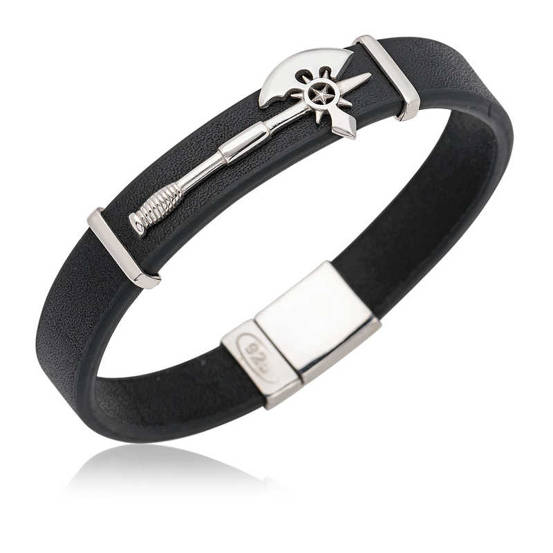 Gümüş Balta Figürlü Deri Erkek Bileklik
