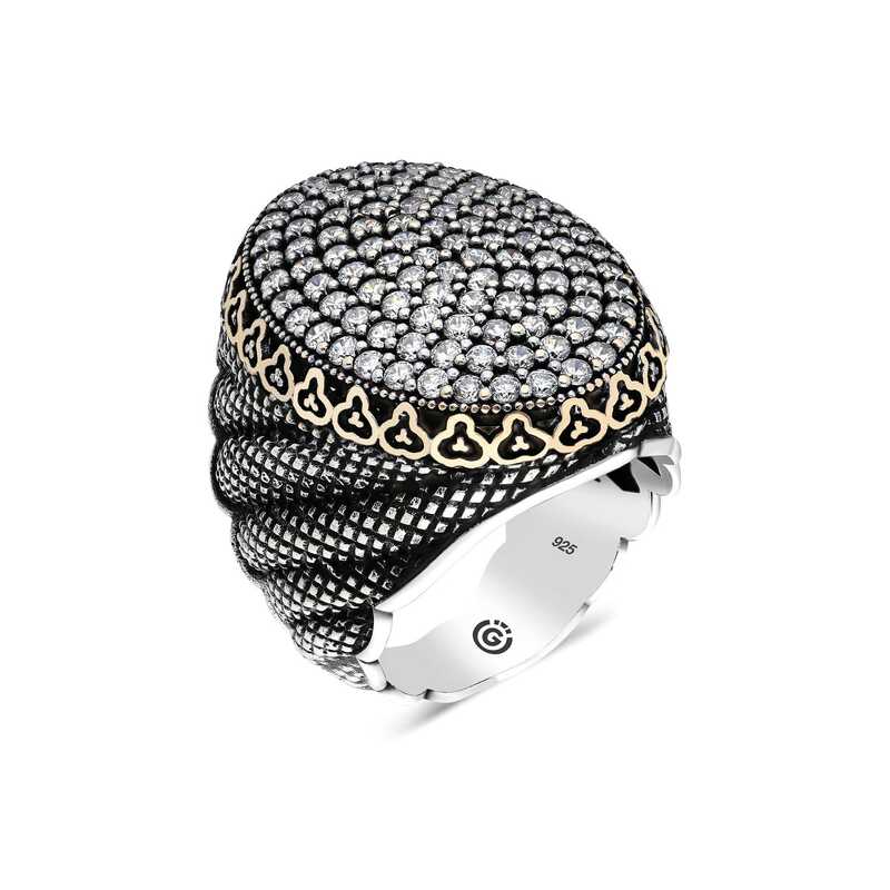 Gümüş Beyaz Zirkon Taşlı Oval Erkek Yüzük