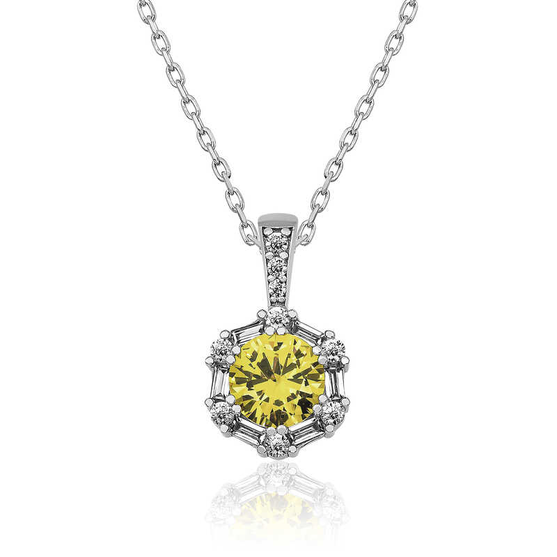 Gümüş Buğday Sarısı Baget Taşlı Bayan Kolye