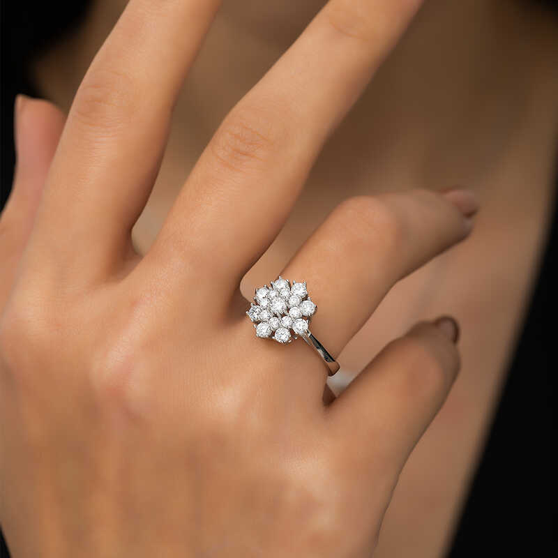 Özel günlerde kadınların tercihleri arasında ilk sıralarda yer alan yüzükler pek çok kadının kurtarıcısıdır. Spor ve klasik her kıyafetle kombinleyebileceğiniz çiçek desenli yüzük, çok uygun fiyatla karşınızda. Zarif çiçek motifi üzerine işlenen küçük beyaz zirkon taşlarla desteklenmiş bu modelle şıklığınızı tamamlayabilirsiniz. Bu yüzük modeli 925 ayar gümüşten imal edilmiştir. Gümüş üzerine rodyum kaplama yapılmıştır. Rodyum kaplama yapılan gümüş yüzük modelleri parlaklığını uzun süre muhafaza eder ve oksitlenmesi gecikir. Tüm gümüş yüzüklerde olduğu gibi gümüş çiçek desenli bayan yüzük modeli de tamamen el emeği ile üretilmiştir. Gümüş ve değerli taşlar nedeniyle belirtilen ortalama ürün ağırlığında ± %10 sapma olabilmektedir.