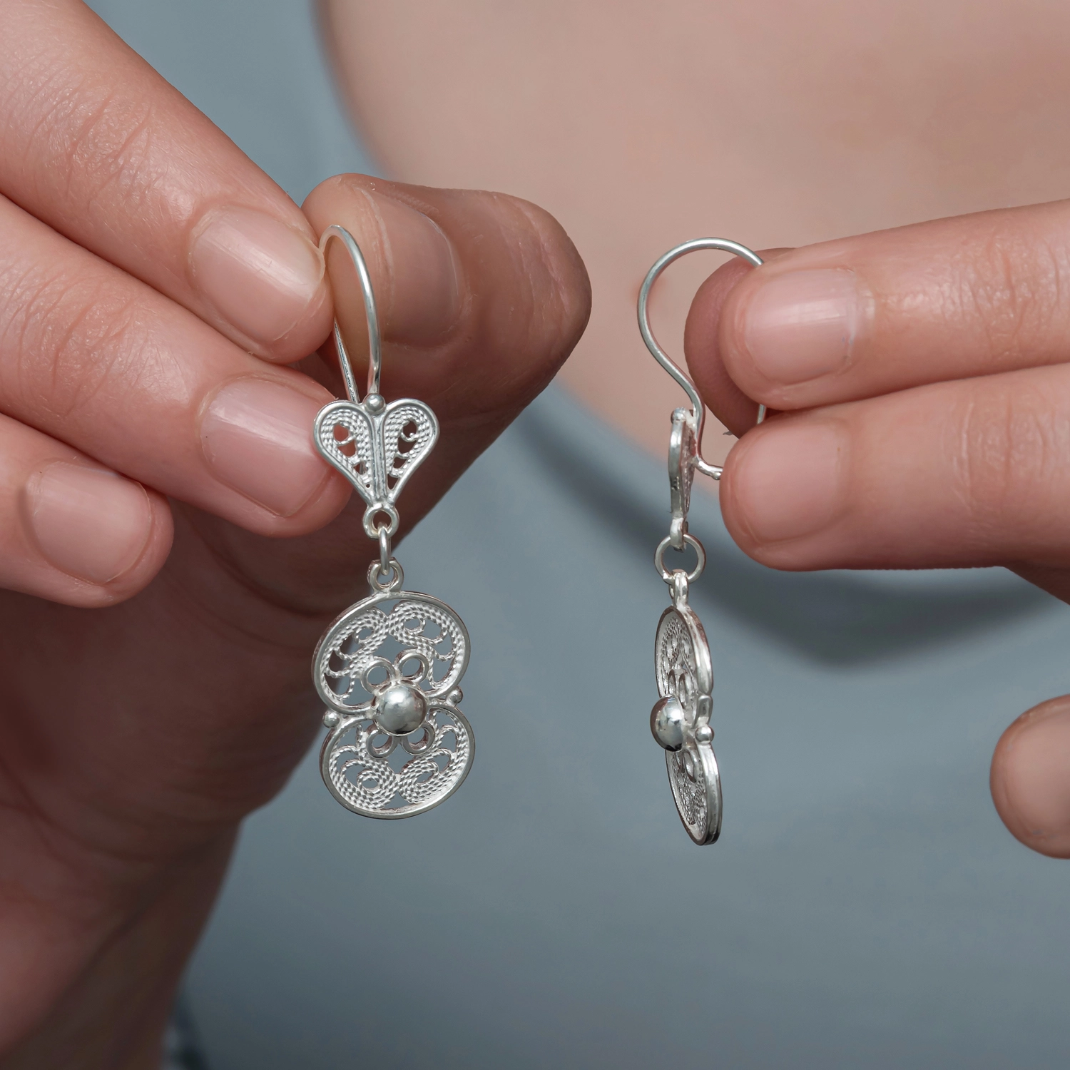 Gümüş Çiçek Motifli Telkari Kadın Küpe, zarif çiçek desenleri ve ince telkari işçiliğiyle şıklığı tamamlayan, hafif ve elegant bir aksesuardır.